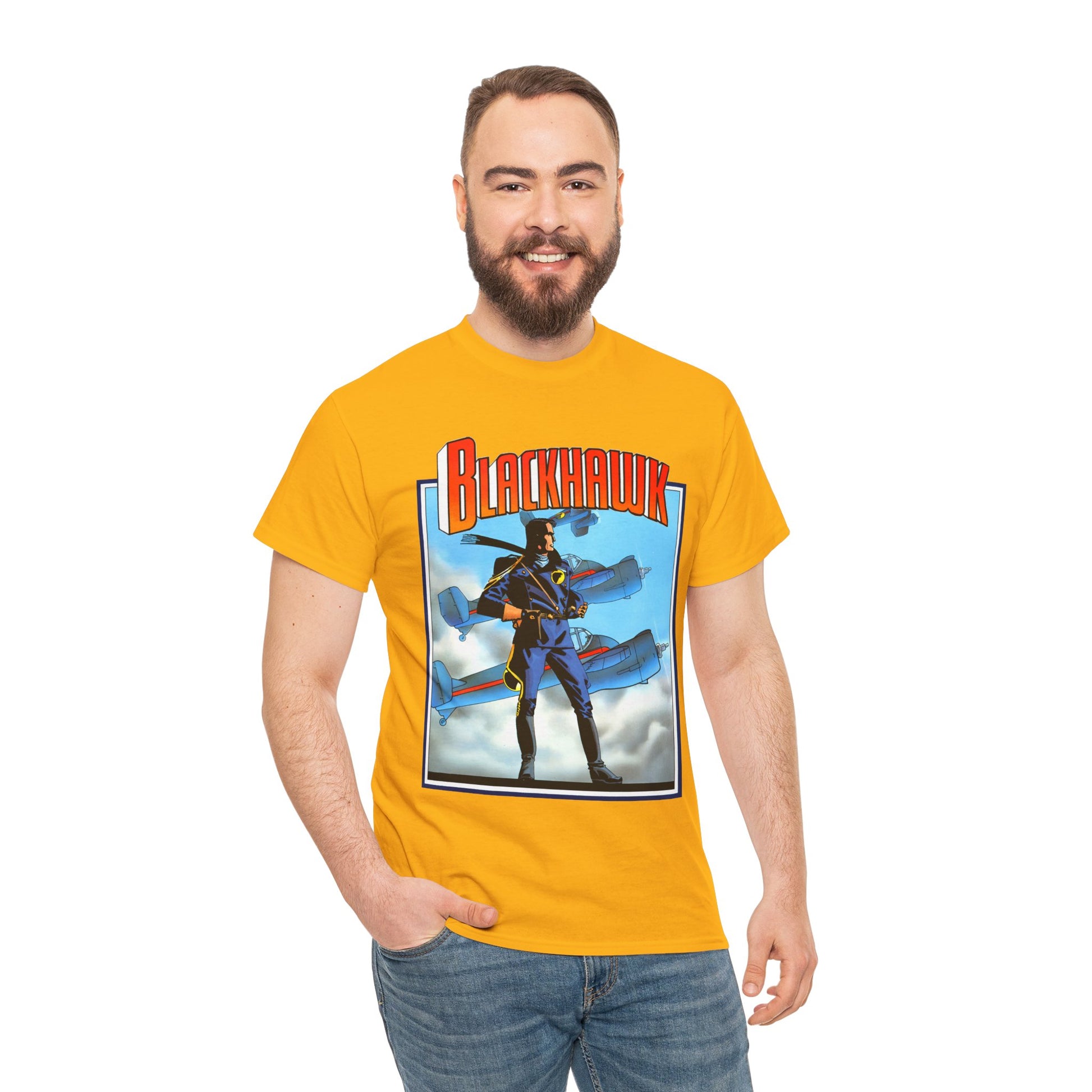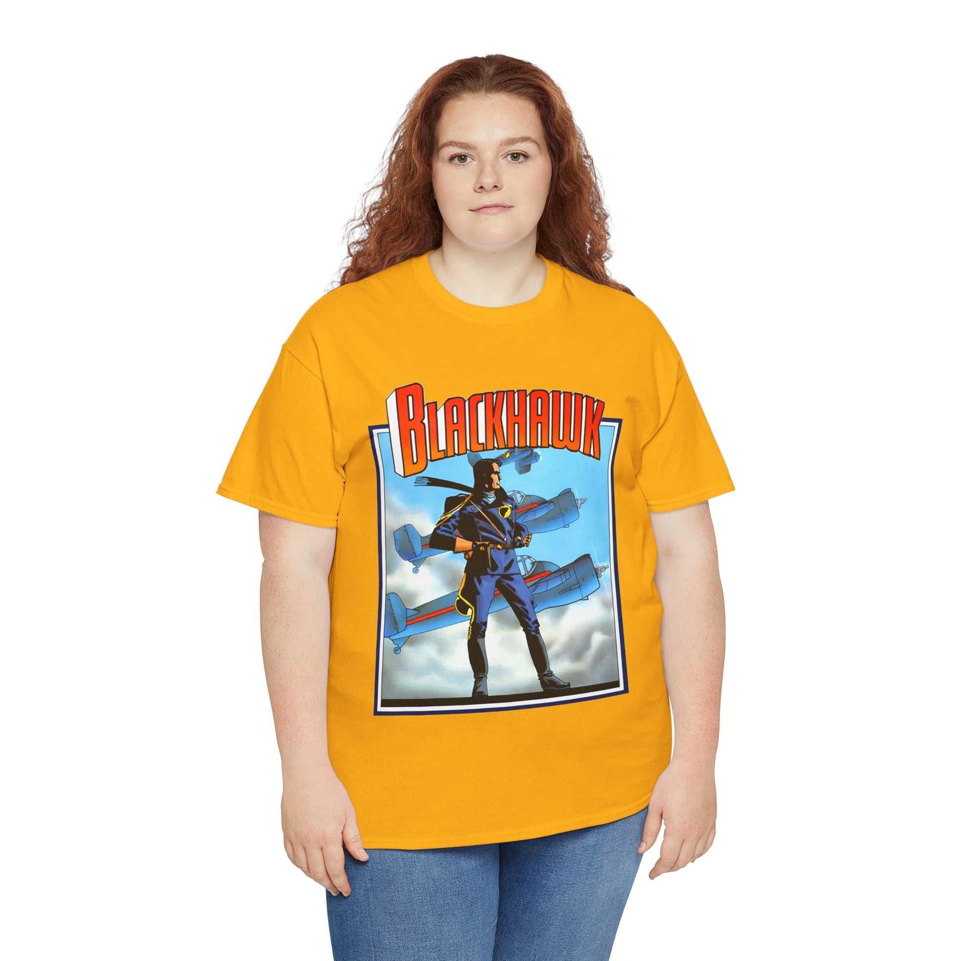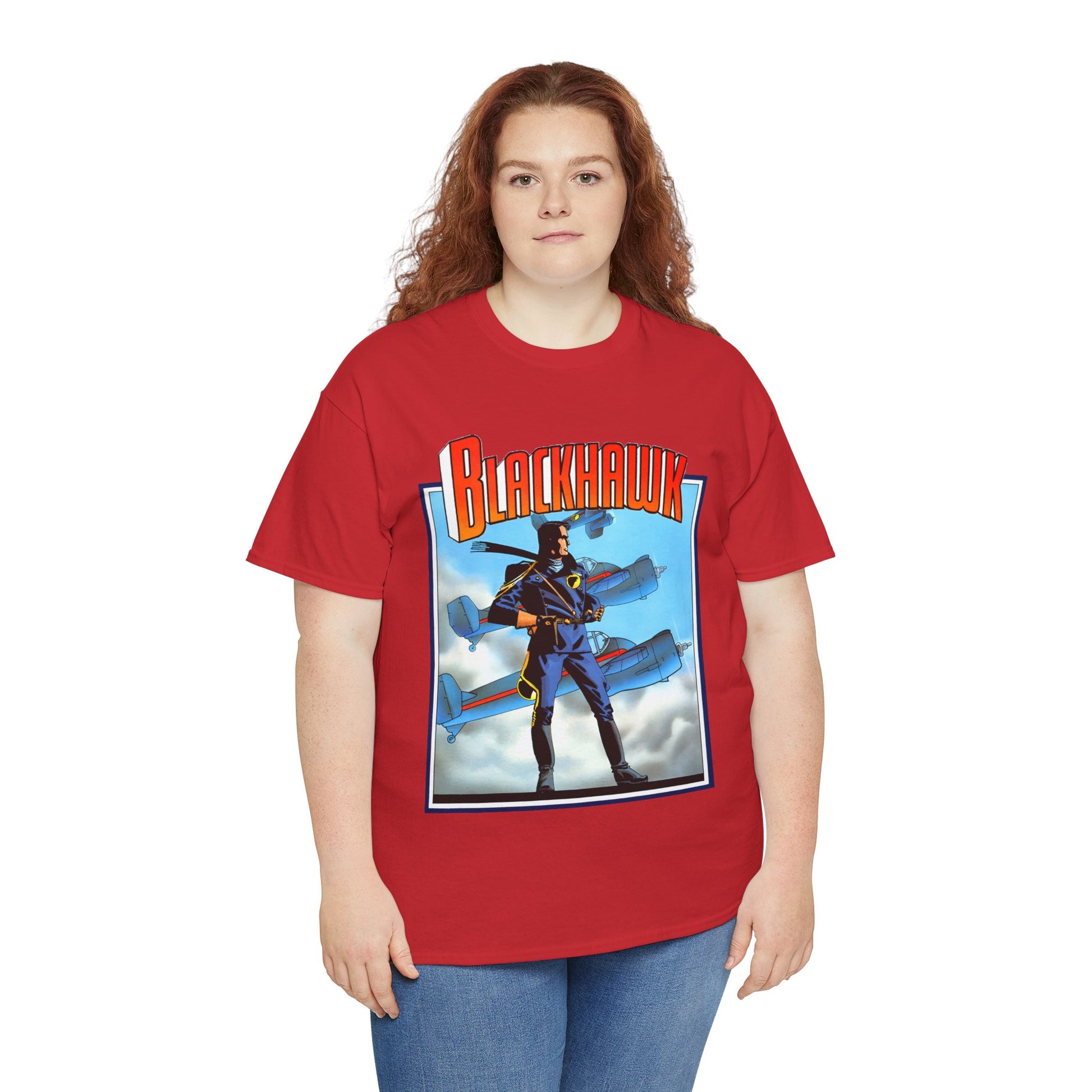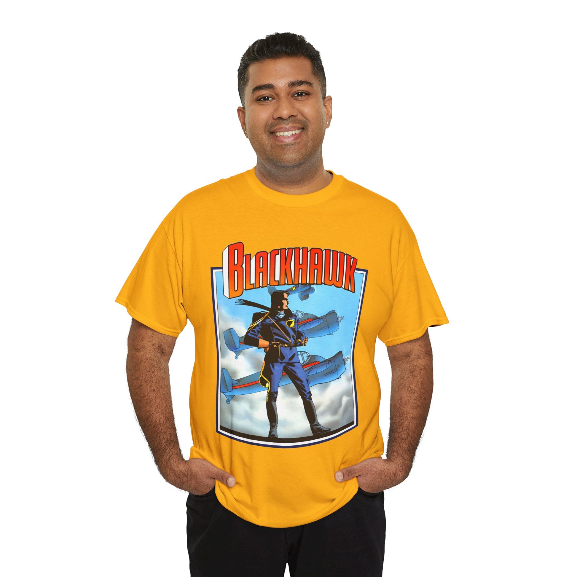 Celebrate legendary courage with the Blackhawk T-Shirt featuring iconic Howard Chaykin artwork. This design honors the fearless World War II anti-Nazi ace pilots from DC Comics, blending history and heroism in a striking graphic tee. Perfect for fans of classic comic art and wartime valor, it brings a powerful story to your everyday style.