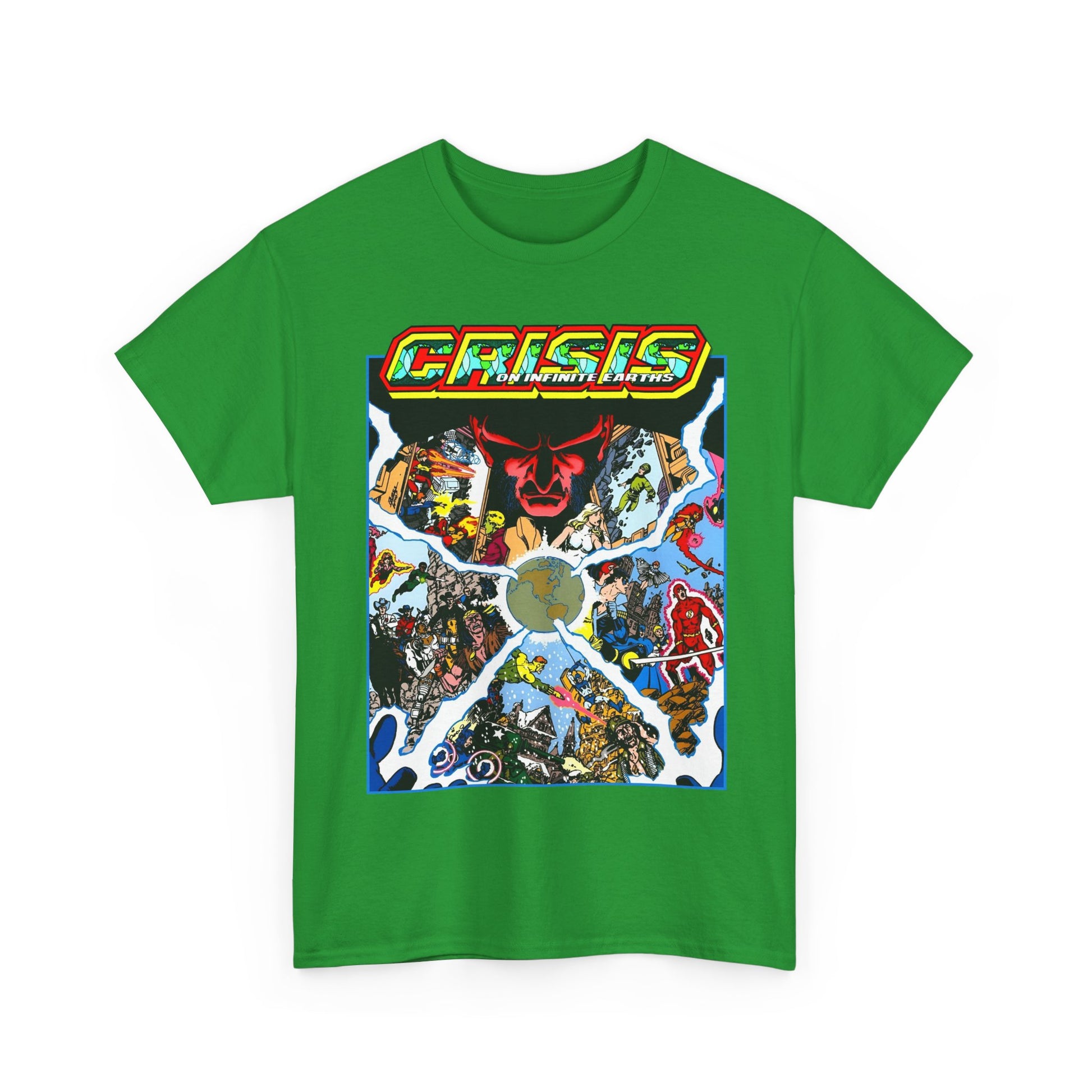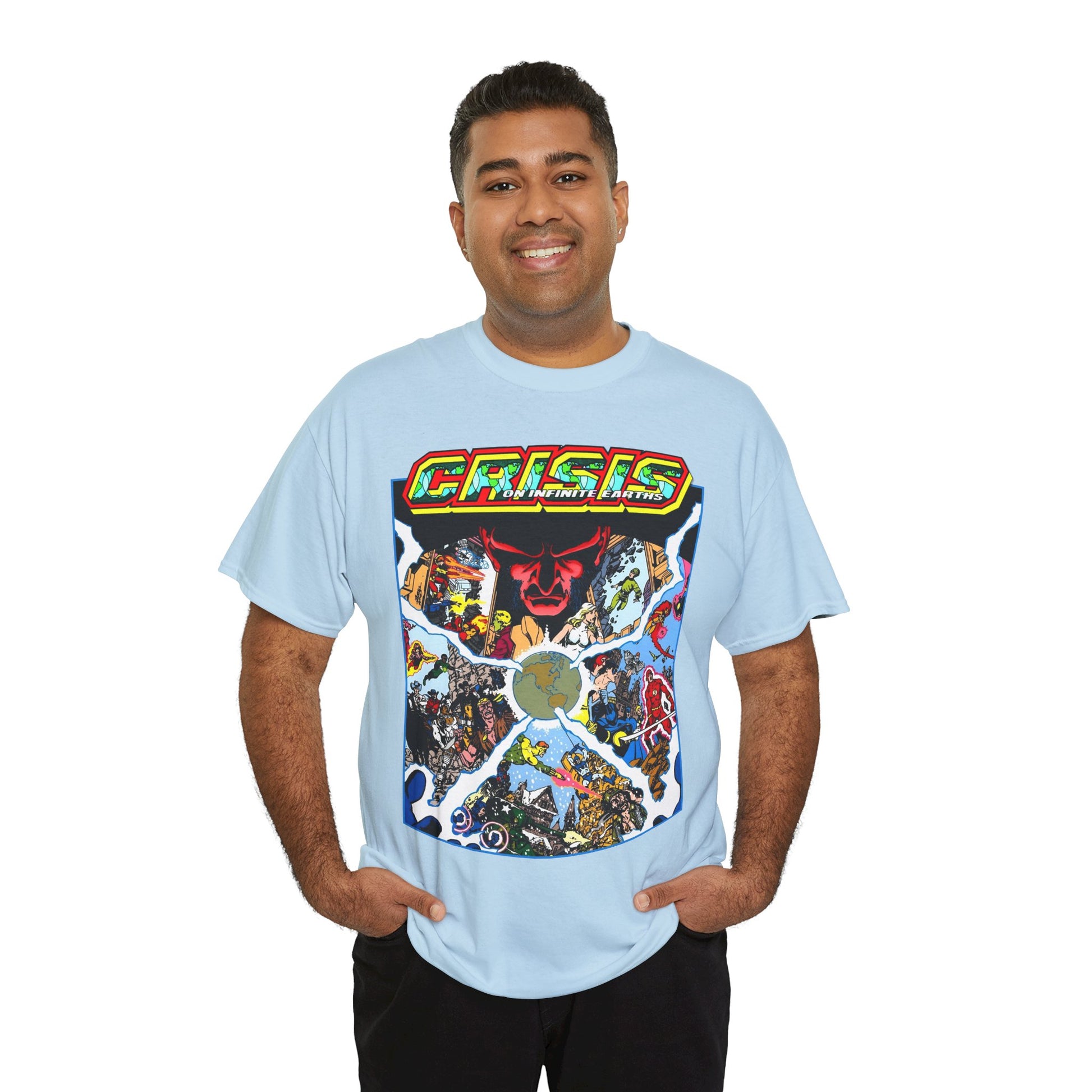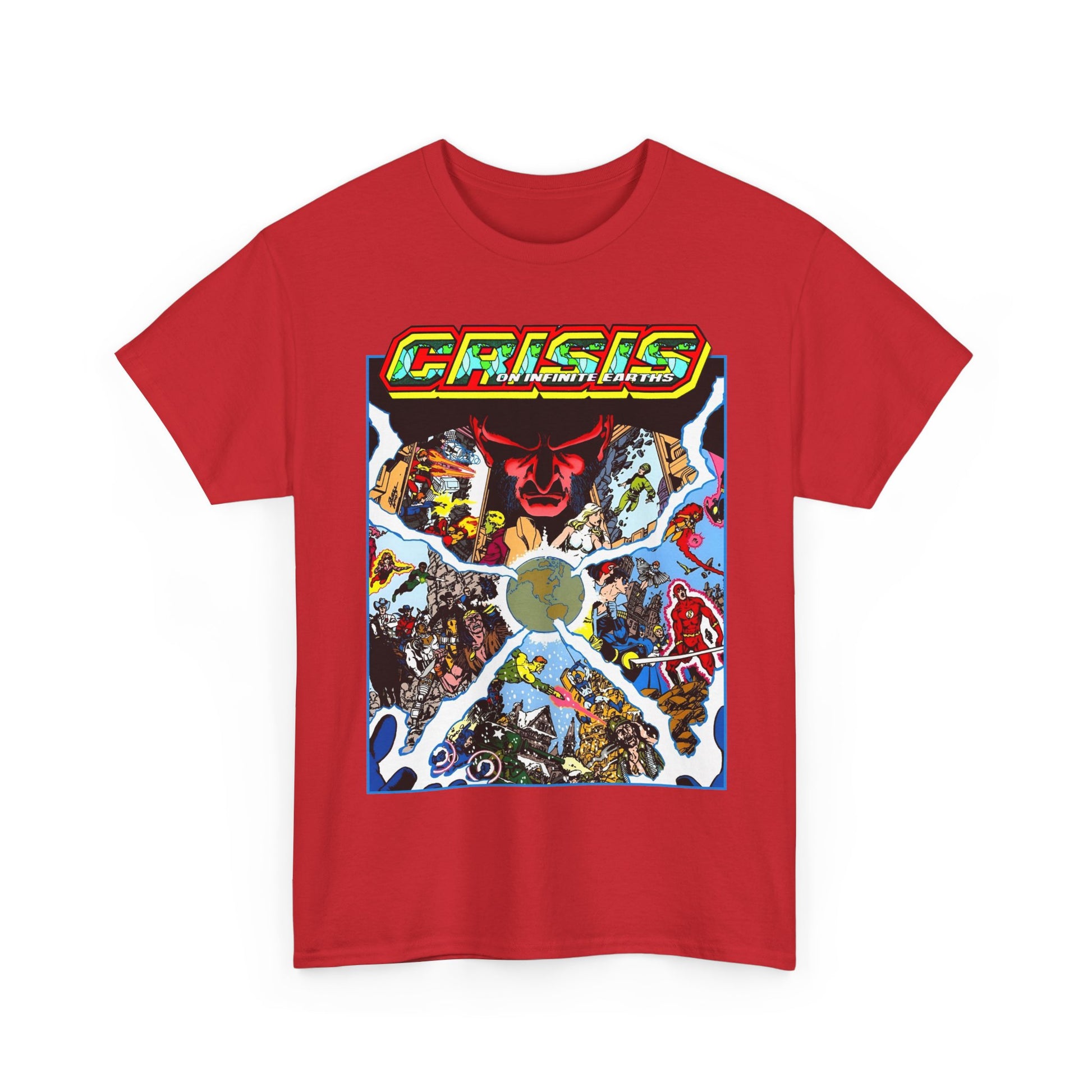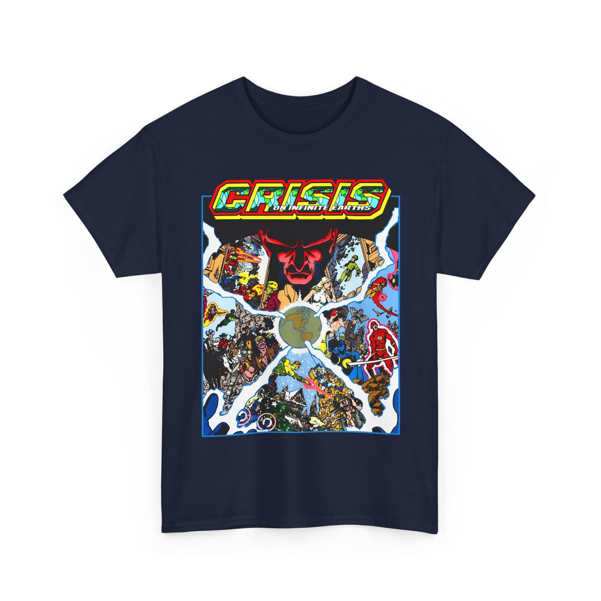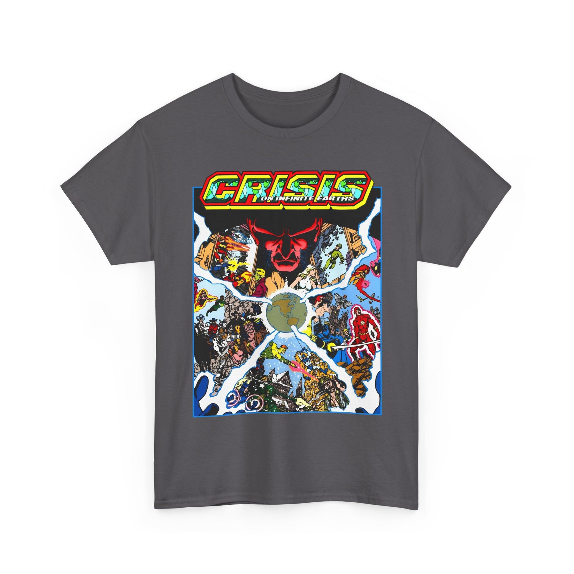 Crisis on Infinite Earths T-Shirt - George Perez Art - #3 Cover - Monitor, Flash, Starfire, Brainiac 5, Dream Girl - DC Comics