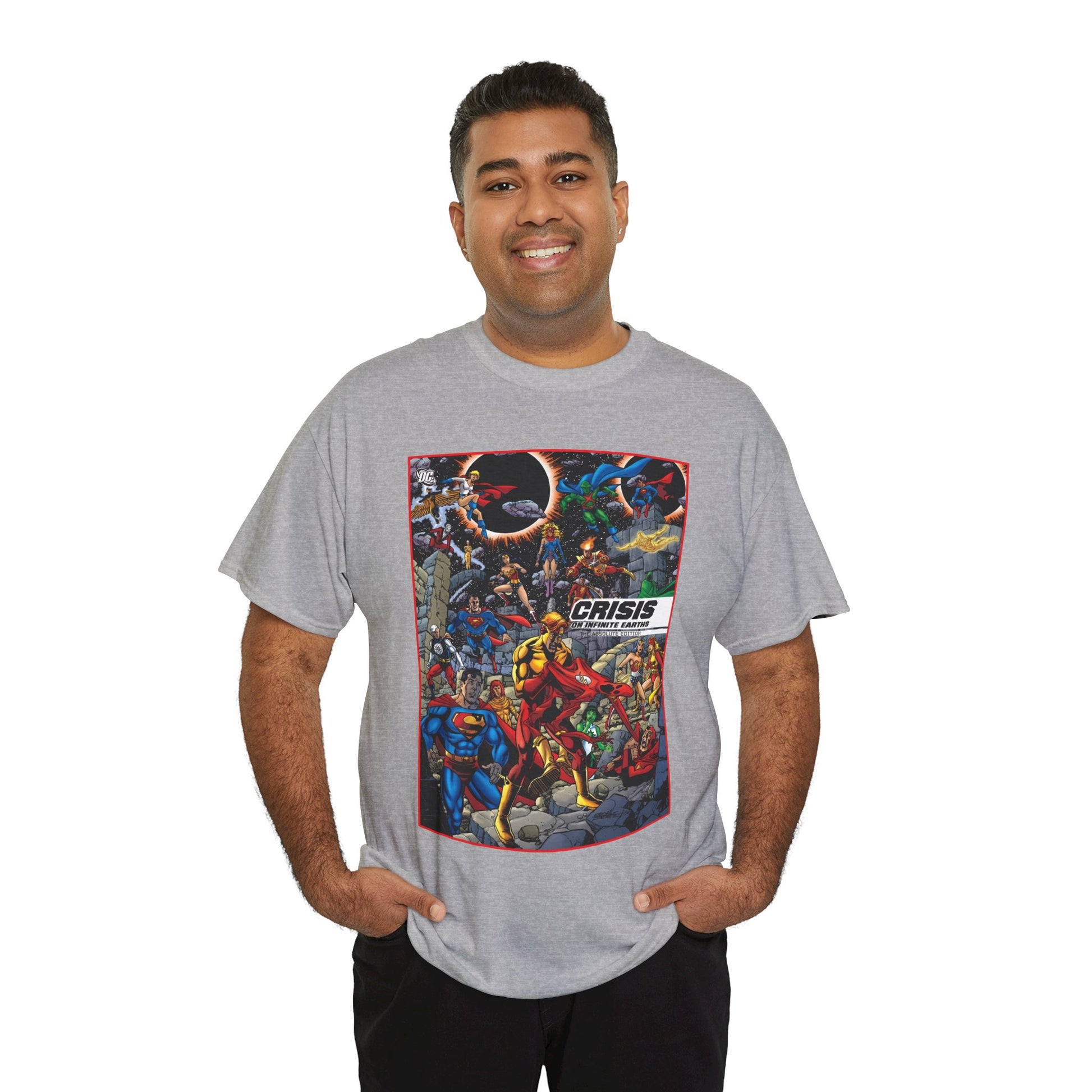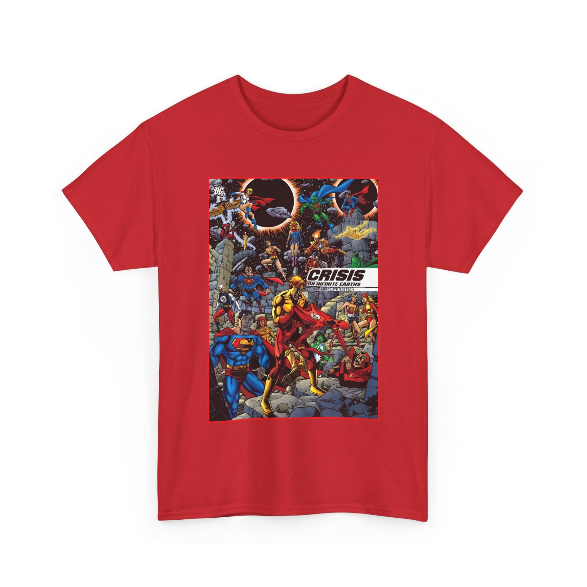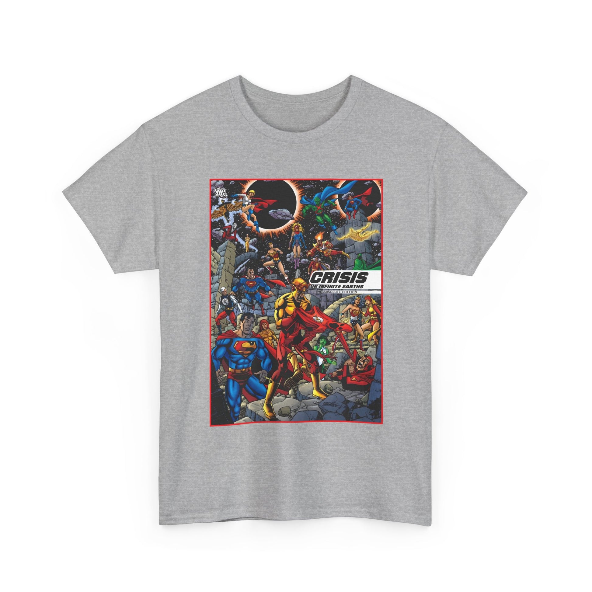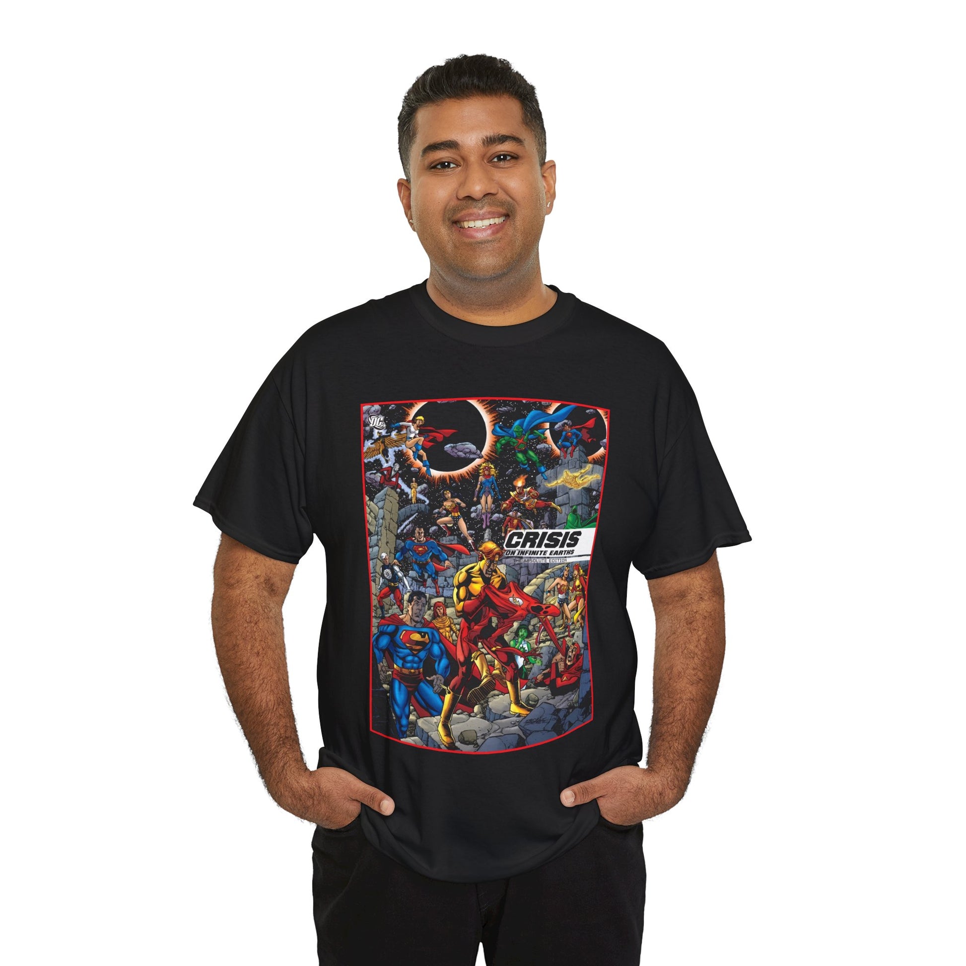 Celebrate a landmark moment in comic history with this Crisis on Infinite Earths T-Shirt featuring the iconic George Perez Absolute Edition cover. Showcasing a masterful composition of Flash, Supergirl, Wonder Woman, Kid Flash, Psycho Pirate, and Harbinger, this design captures the epic scope and intricate artistry that define this classic DC Comics saga. Crafted for fans who appreciate refined homage to comic artistry, the shirt blends timeless storytelling with exceptional visual detail. Perfect for collectors and aficionados seeking to wear a piece of comic legacy with sophistication.