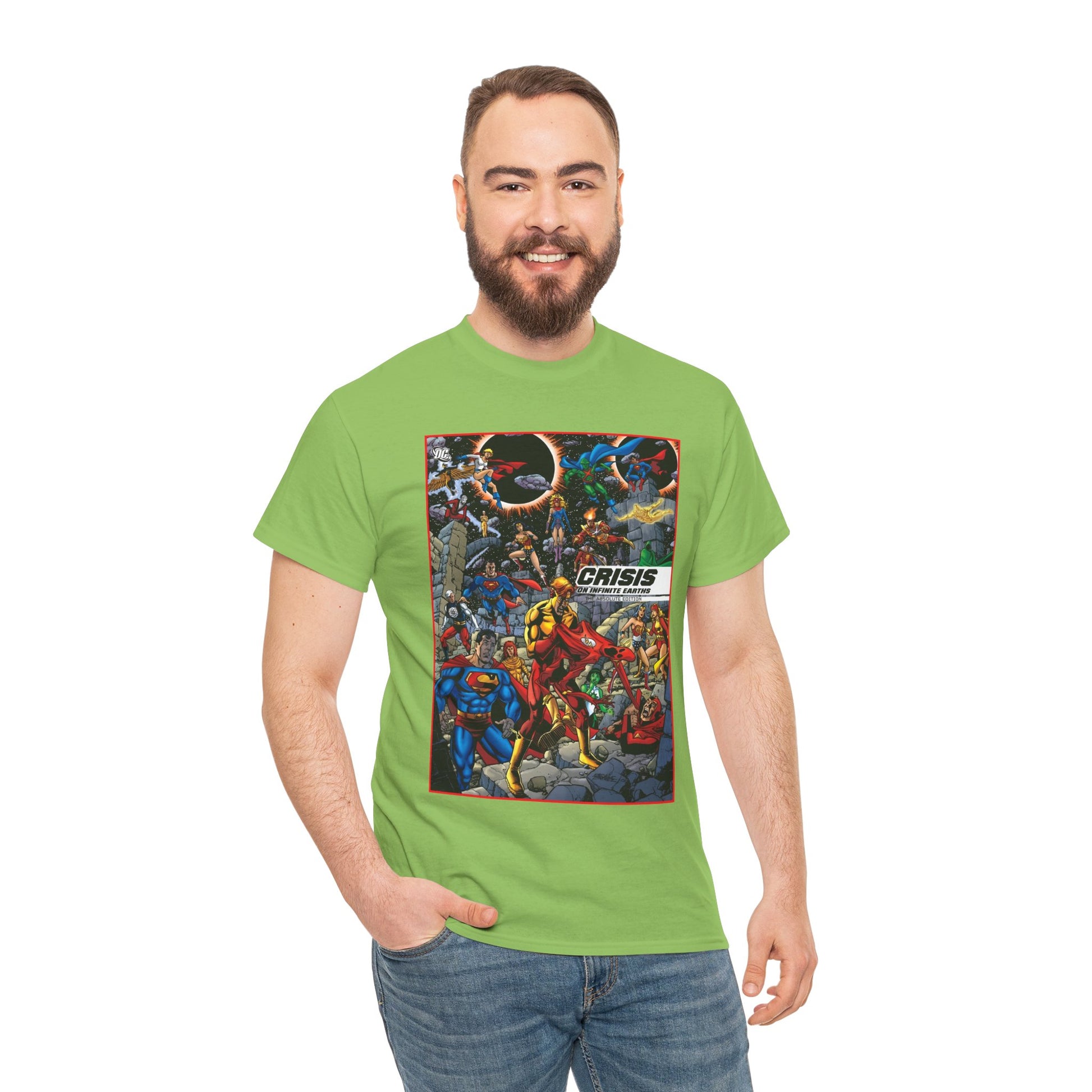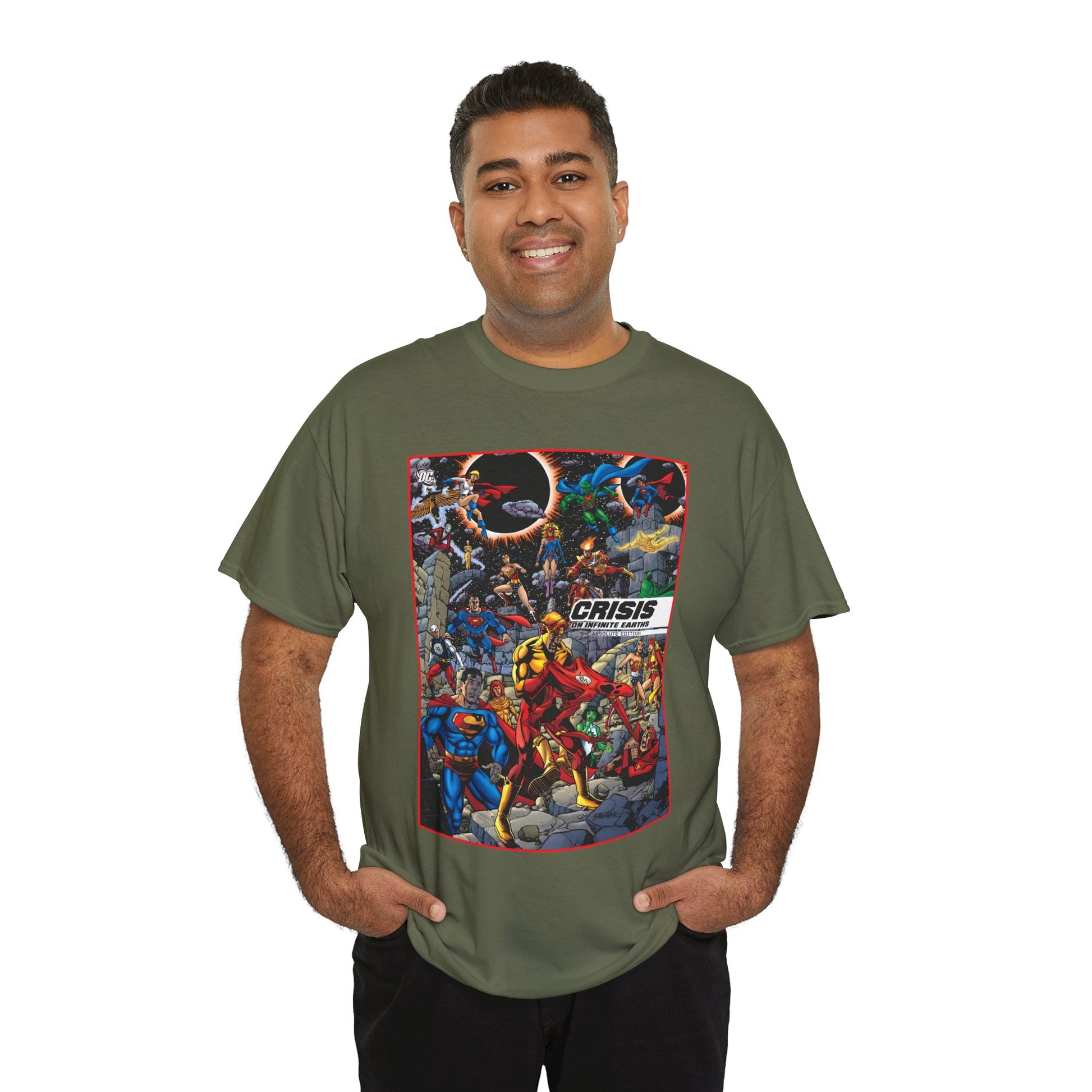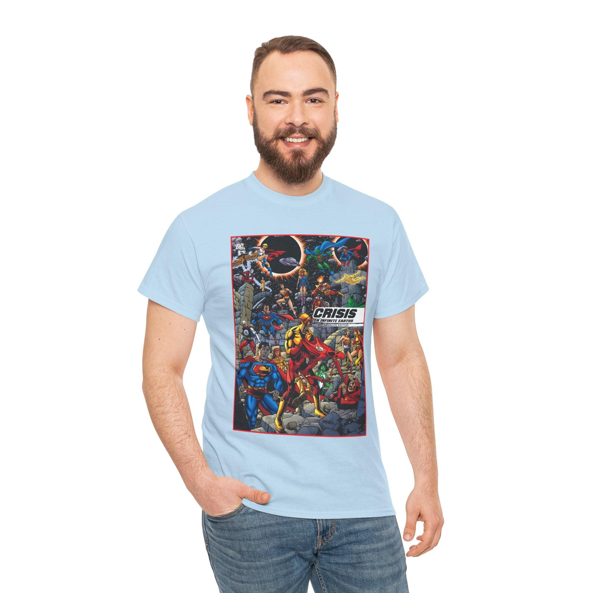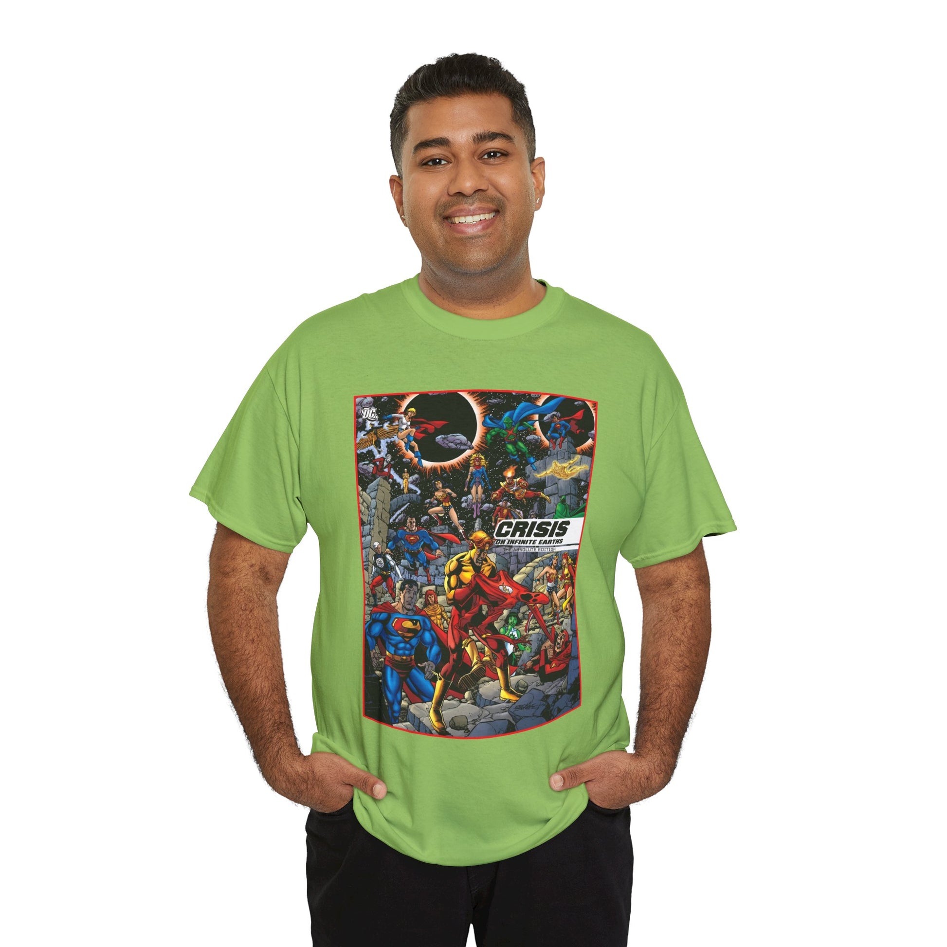 Celebrate a landmark moment in comic history with this Crisis on Infinite Earths T-Shirt featuring the iconic George Perez Absolute Edition cover. Showcasing a masterful composition of Flash, Supergirl, Wonder Woman, Kid Flash, Psycho Pirate, and Harbinger, this design captures the epic scope and intricate artistry that define this classic DC Comics saga. Crafted for fans who appreciate refined homage to comic artistry, the shirt blends timeless storytelling with exceptional visual detail. Perfect for collectors and aficionados seeking to wear a piece of comic legacy with sophistication.