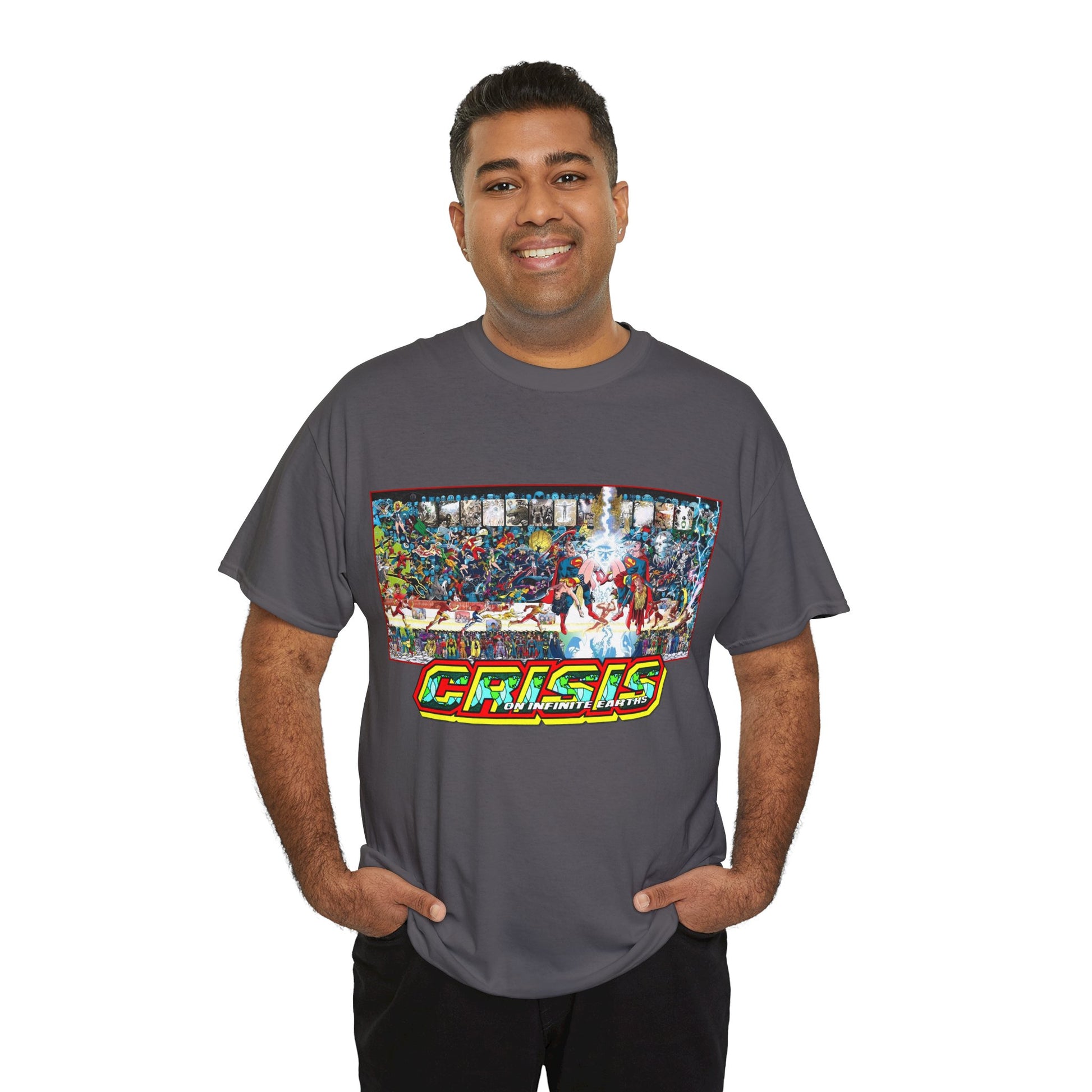 Crisis on Infinite Earths T-Shirt - Jerry Ordway/George Perez Art - Updated 2025 Poster Art - Superman, Wonder Woman, Supergirl, Flash, Harbinger, Pariah, Obsidian, Firestorm - DC Comics