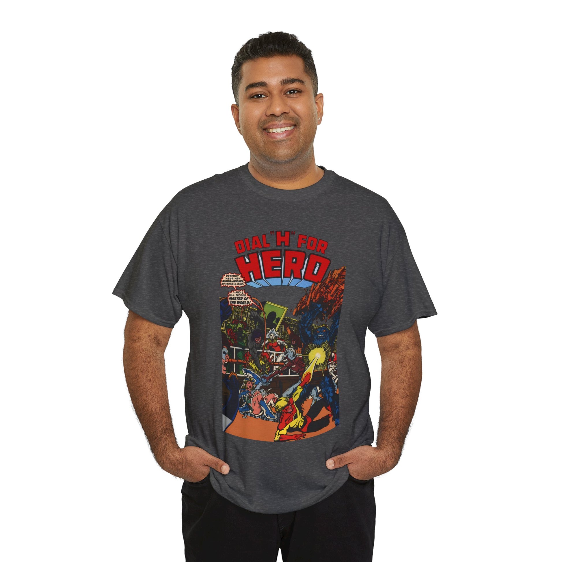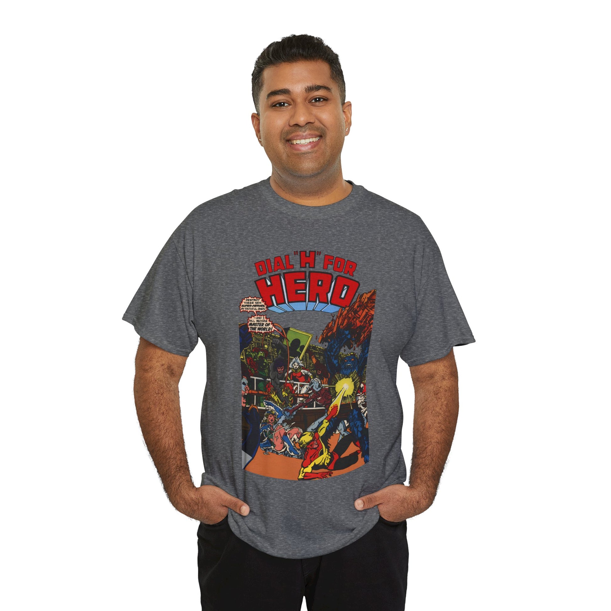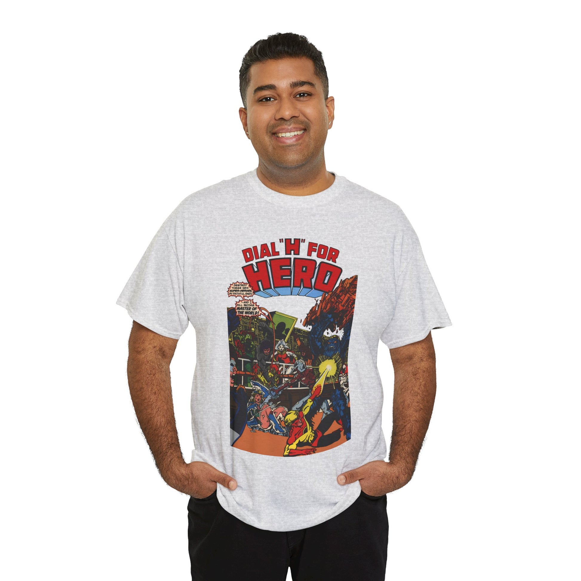 Celebrate classic comic book art with this one-of-a-kind, high-quality Dial "H" For Hero T-Shirt. Featuring striking artwork by George Perez of Chris King, and Vicki Grant from the iconic Adventure Comics series, this tee lets you wear your superhero vibes proudly. Perfect for DC Comics fans who love a playful nod to legendary heroes, it combines nostalgic style with comfortable everyday wear.