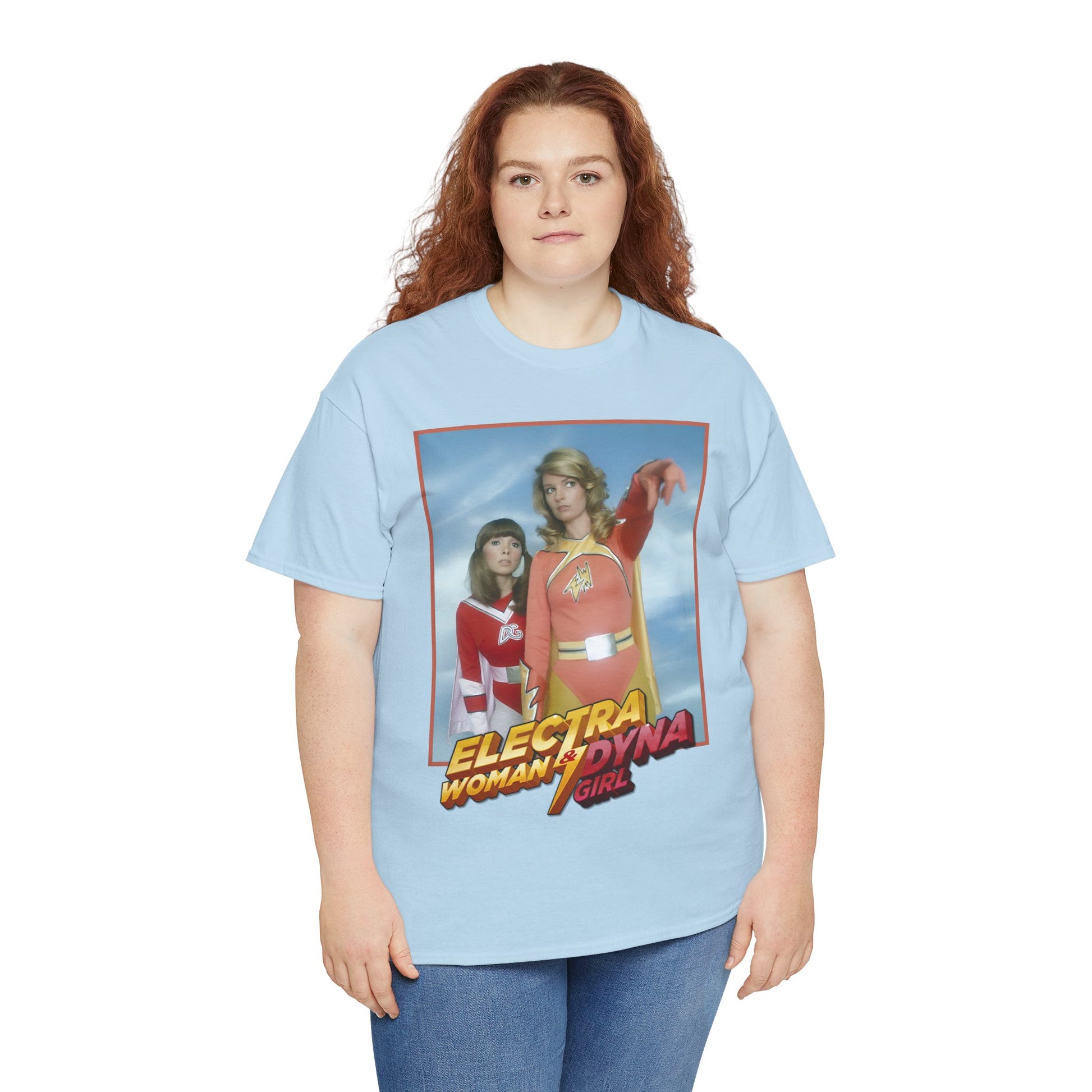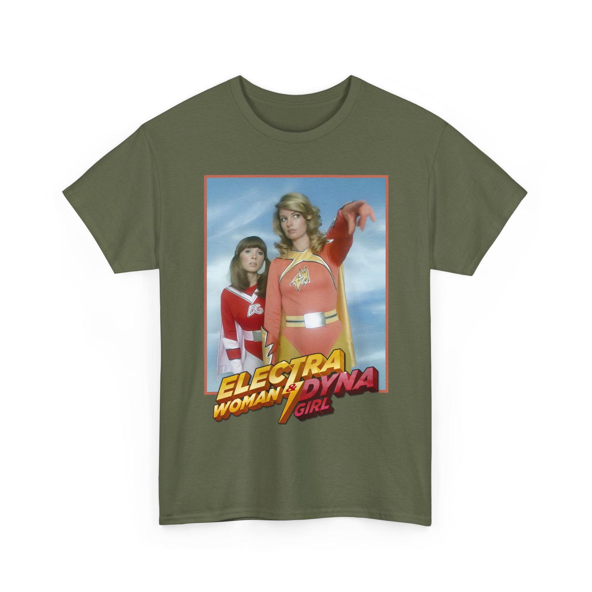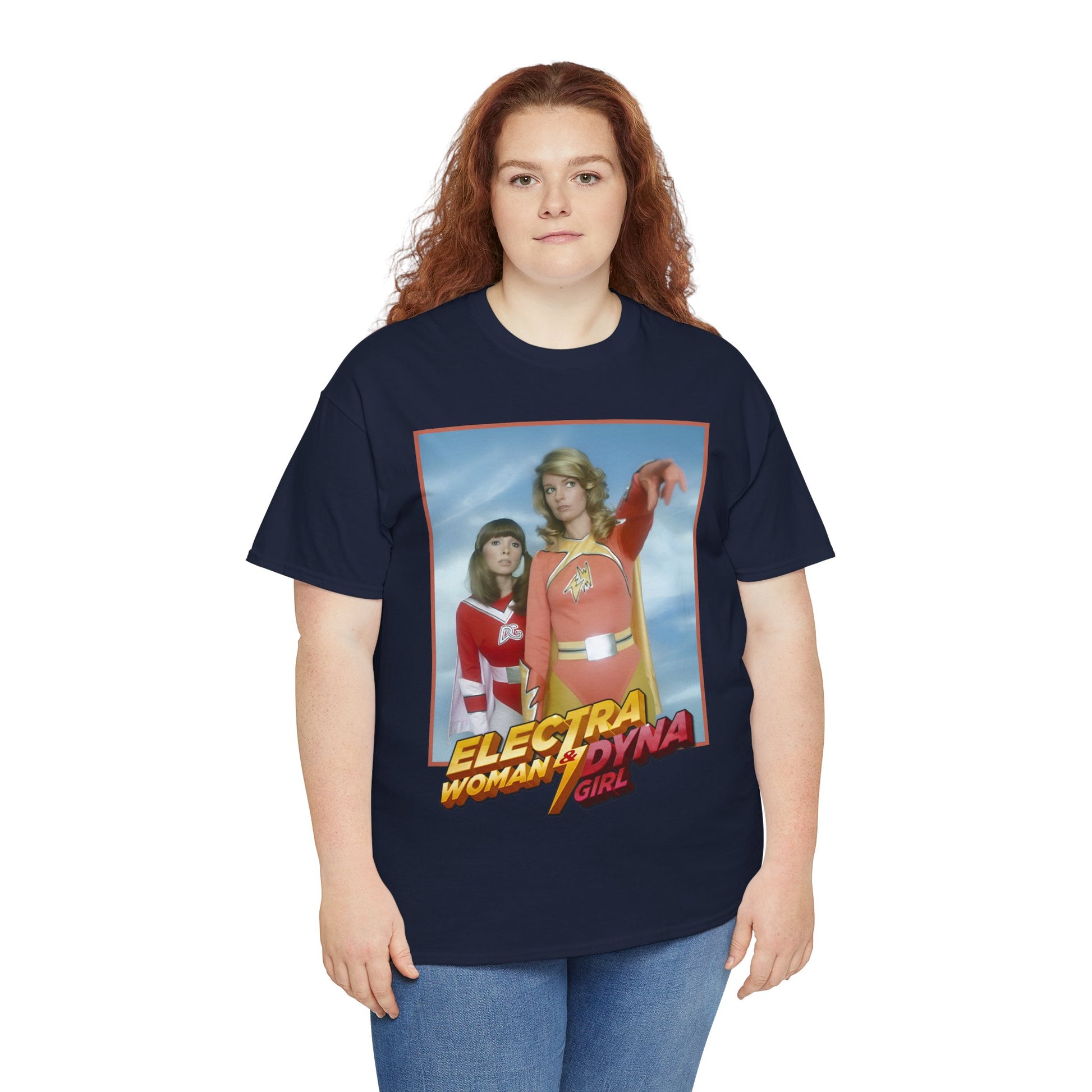 Electra Woman & Dyna Girl T-Shirt - Popular Krofft Supershow Characters from the 1970s - Deidre Hall & Judy Strangis
