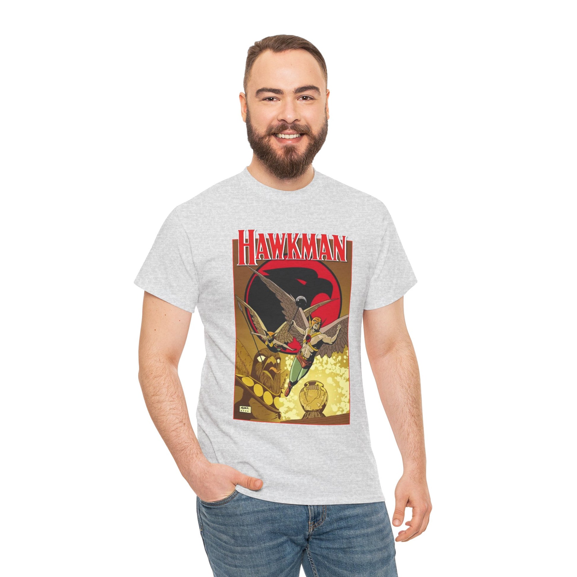 Celebrate heroism with the Hawkman T-Shirt, showcasing the legendary Carter Hall/Katar Hol from Thanagar. Emblazoned with iconic Justice League and Justice Society symbolism, this shirt lets fans display their allegiance to one of DC Comics' most formidable heroes. Crafted for comfort and inspired by valor, it’s perfect for those who stand for justice and strength. Wear the legacy of Hawkman with pride.