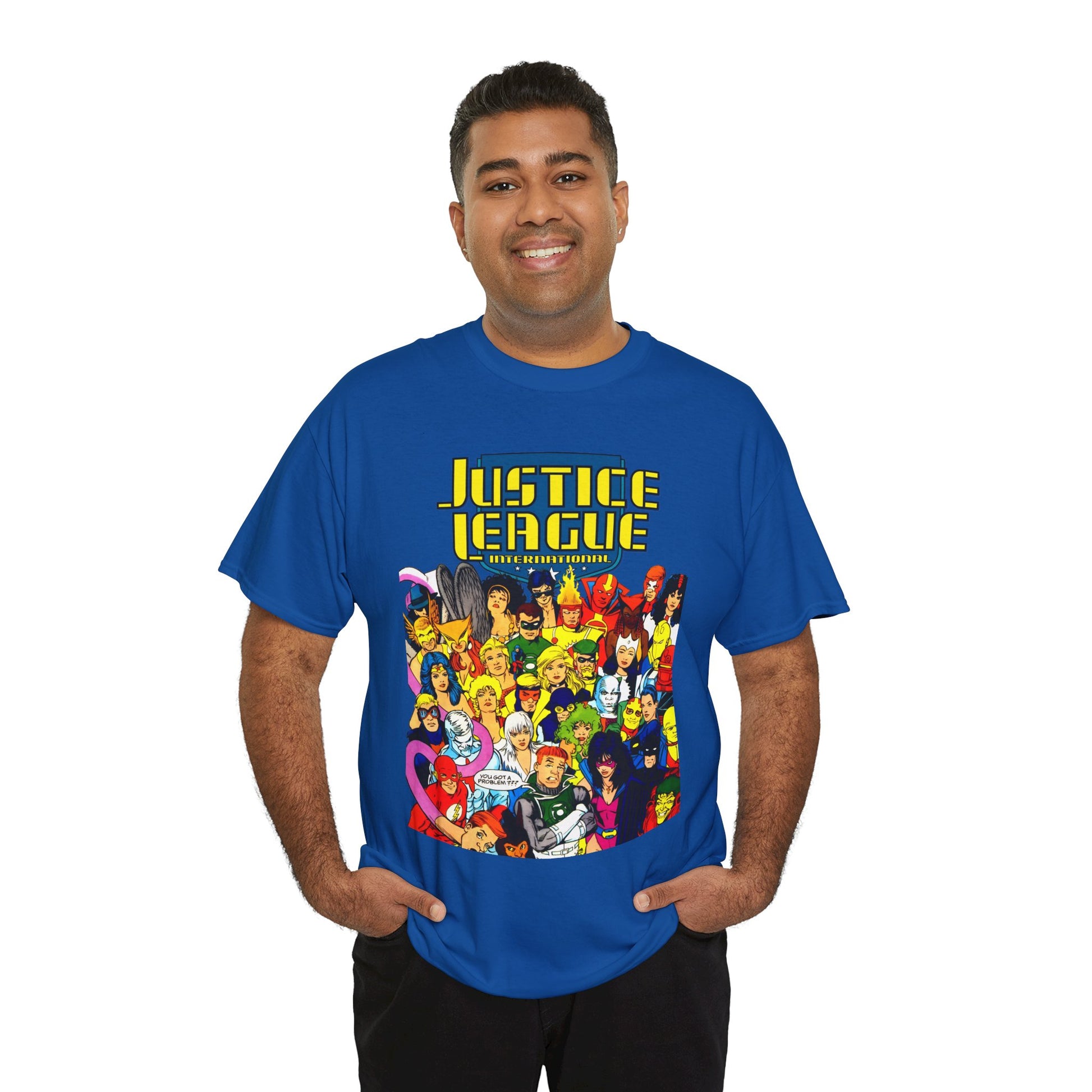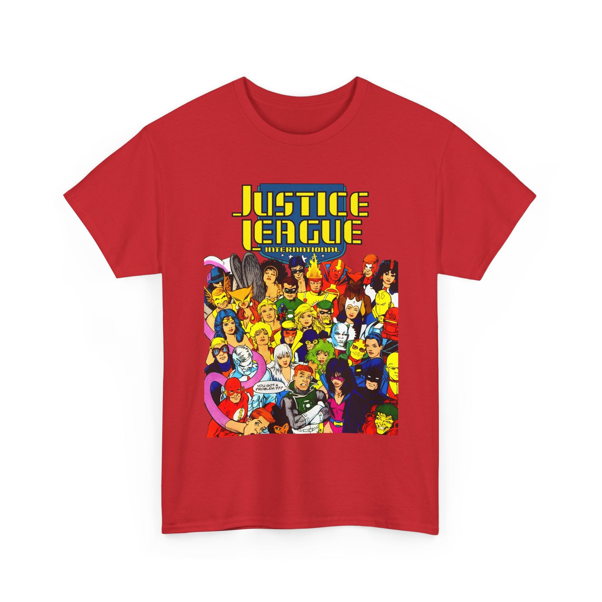 Justice League International T-Shirt - Kevin Maguire DC Comics Sourcebook Art - Booster Gold, Blue Beetle, Batman, Martian Manhunter, Captain Atom, Fire, Ice, Guy Gardner