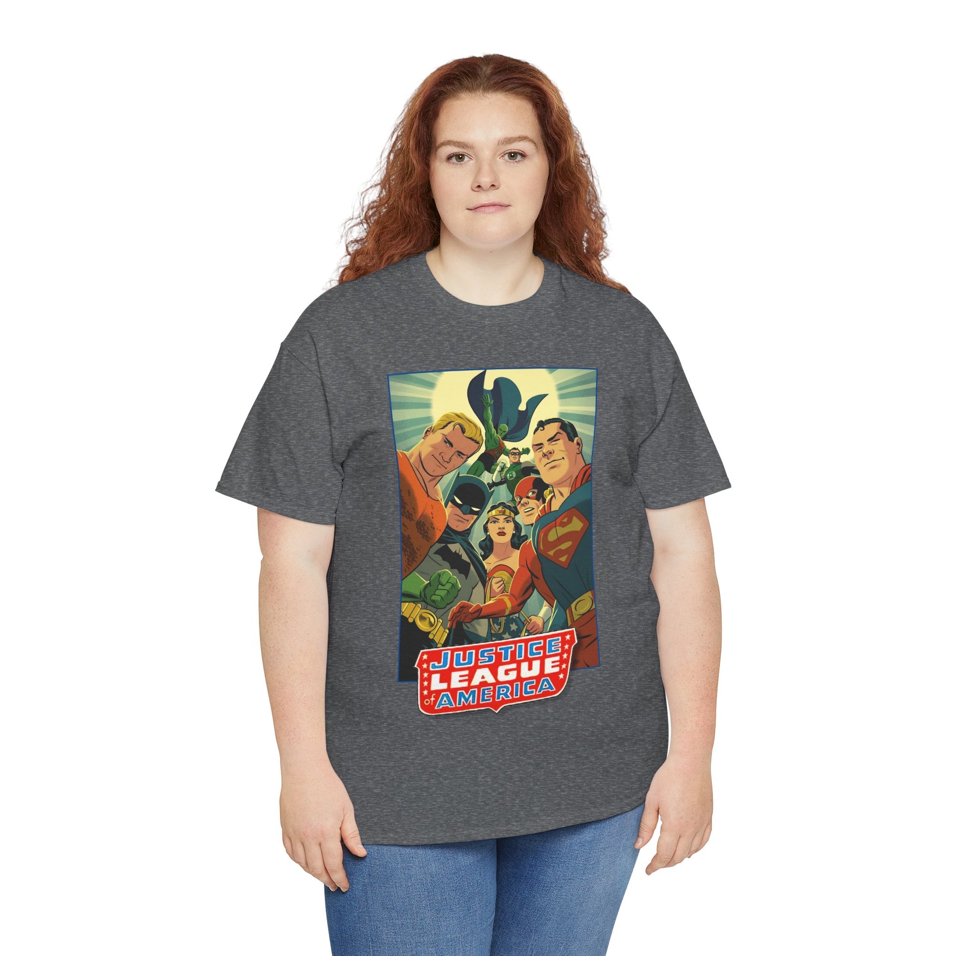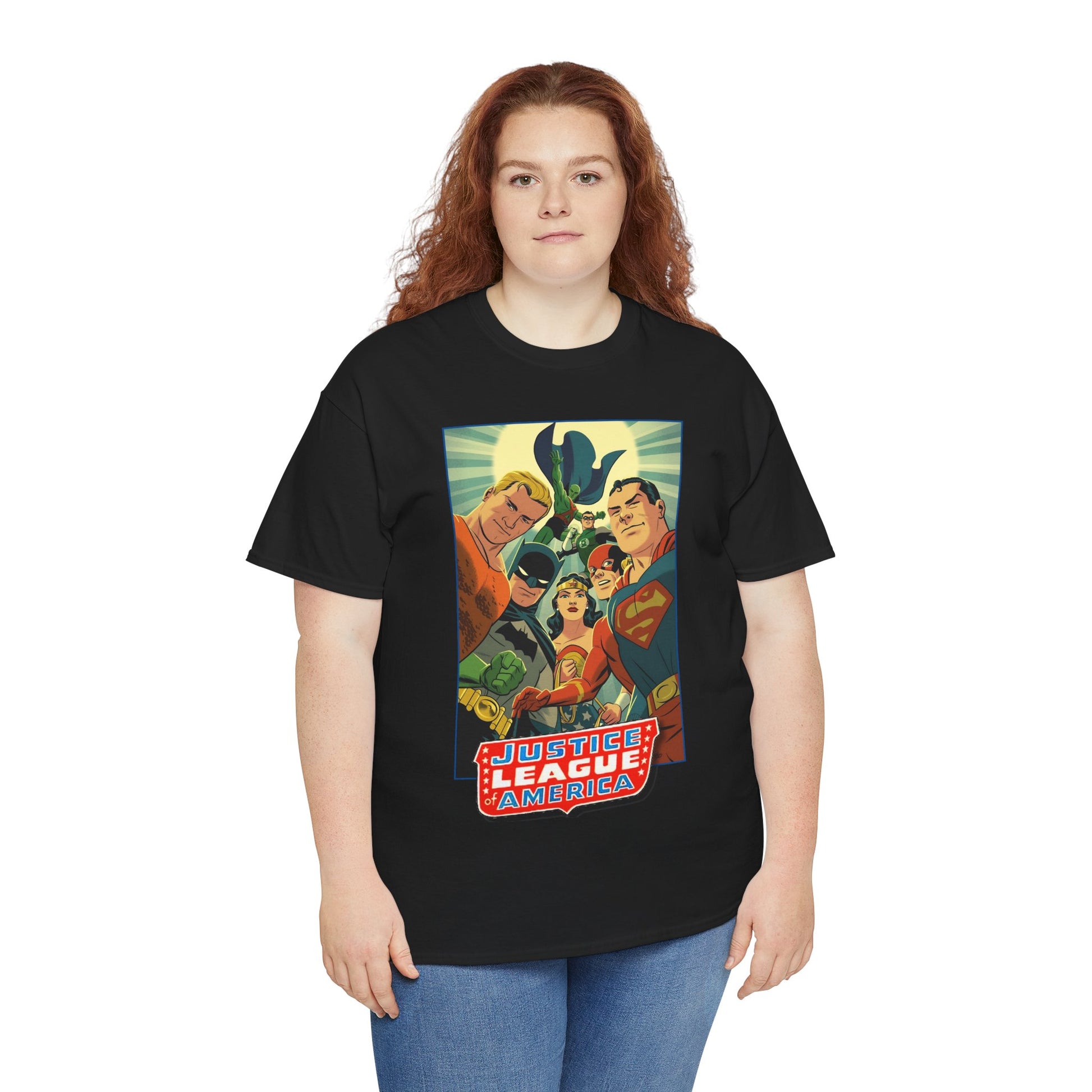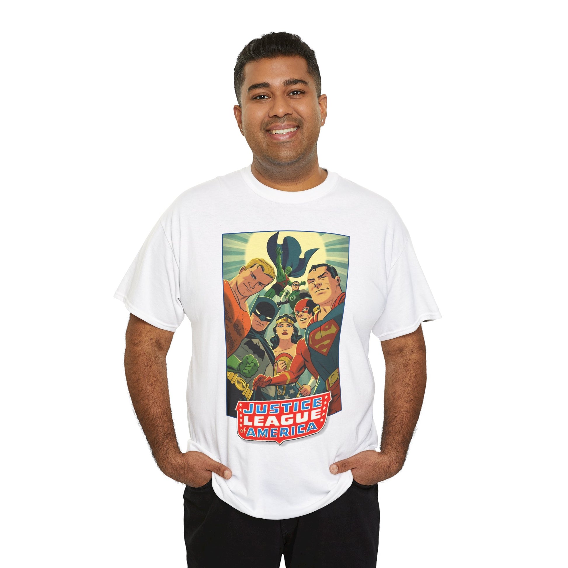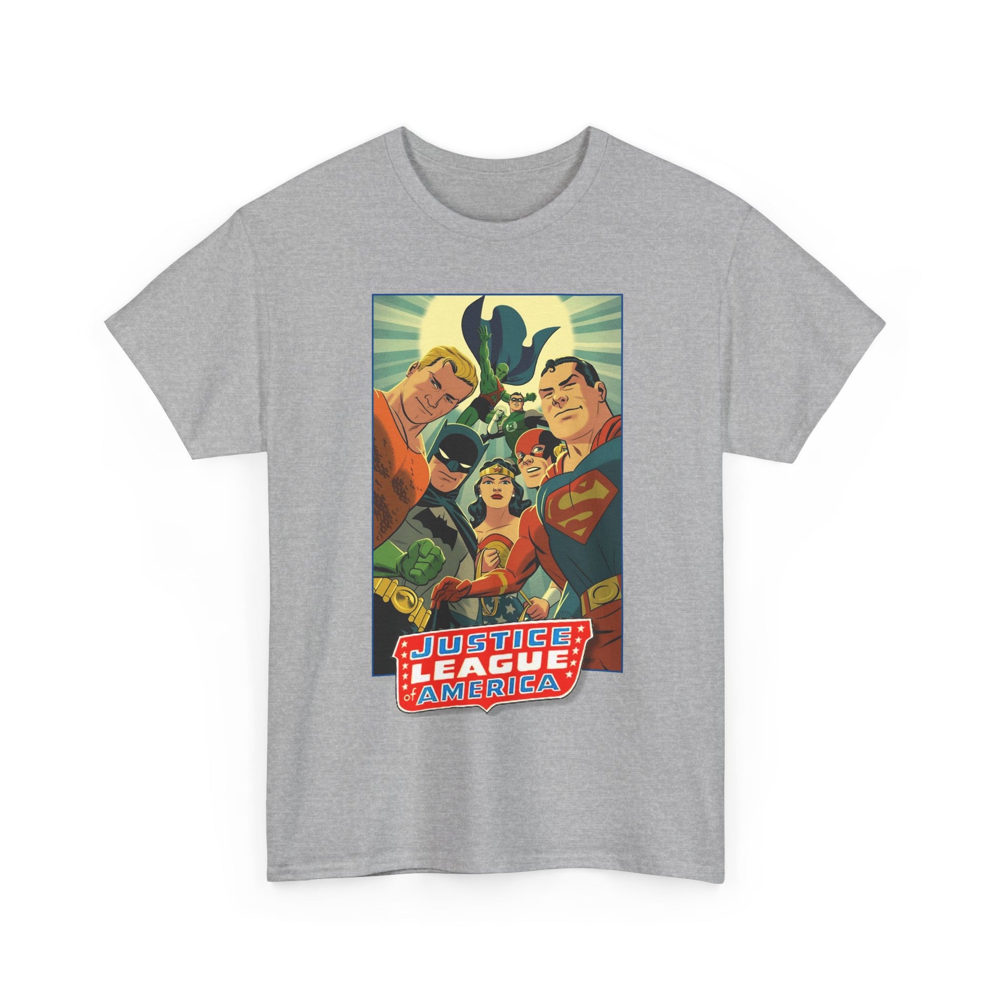 ⚡️ Justice League of America T-Shirt ⚡️ Featuring Michael Cho’s iconic art of Superman, Flash, Wonder Woman, Green Lantern, Batman, and Martian Manhunter — the legendary Silver Age team. Wear the emblem of true heroism and timeless valor from DC Comics. Perfect for champions ready to stand for justice and courage! 🦸♂️🦸♀️🛡️