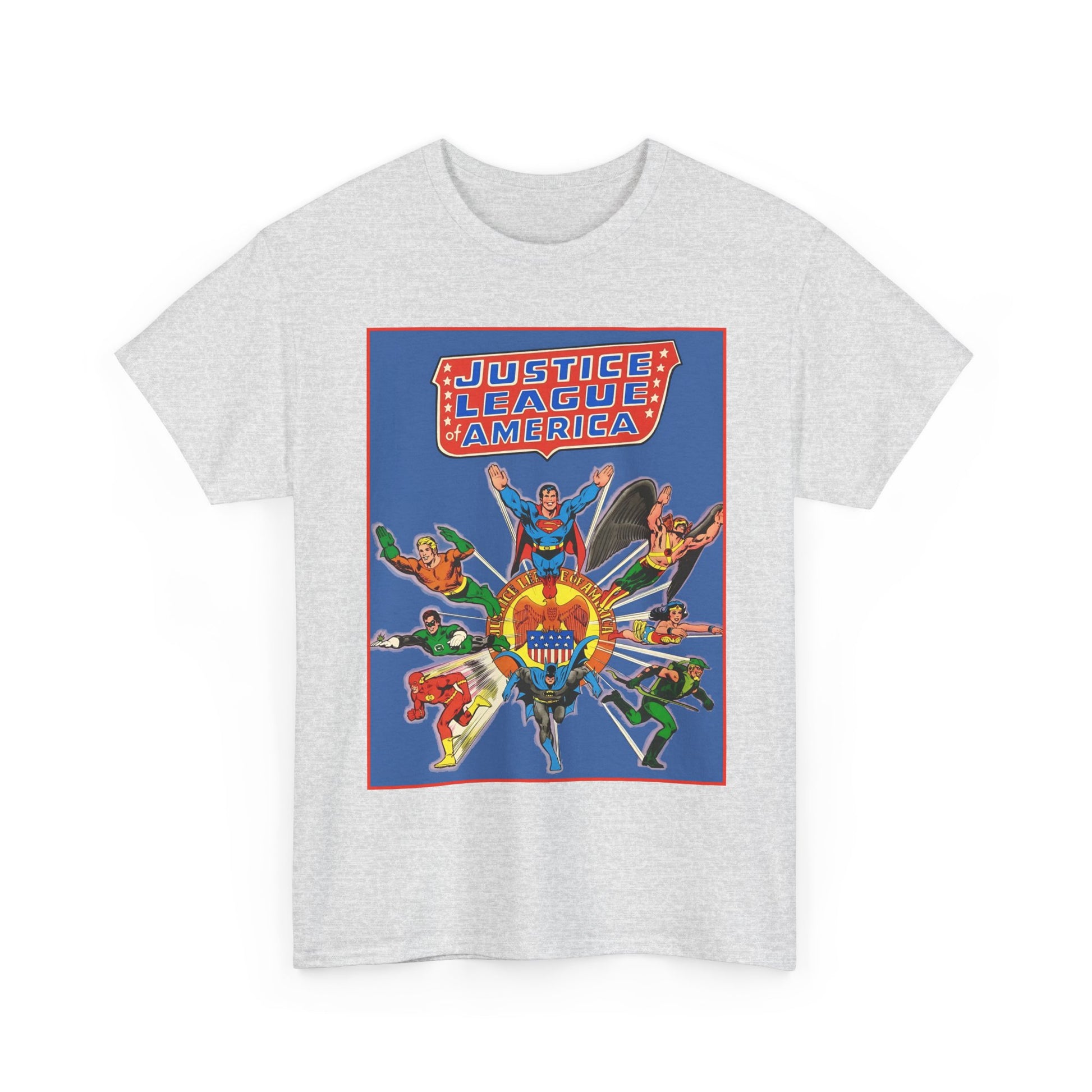 Show your allegiance with the Justice League Treasury Edition T-Shirt, featuring iconic heroes like Superman, Wonder Woman, Flash, Hawkman, Batman, Green Arrow, and Green Lantern. Crafted for fans of DC Comics, this shirt empowers you to wear the spirit of justice and heroism wherever you go. Its bold design celebrates the unity and strength of your favorite champions, inspiring courage in every challenge you face.