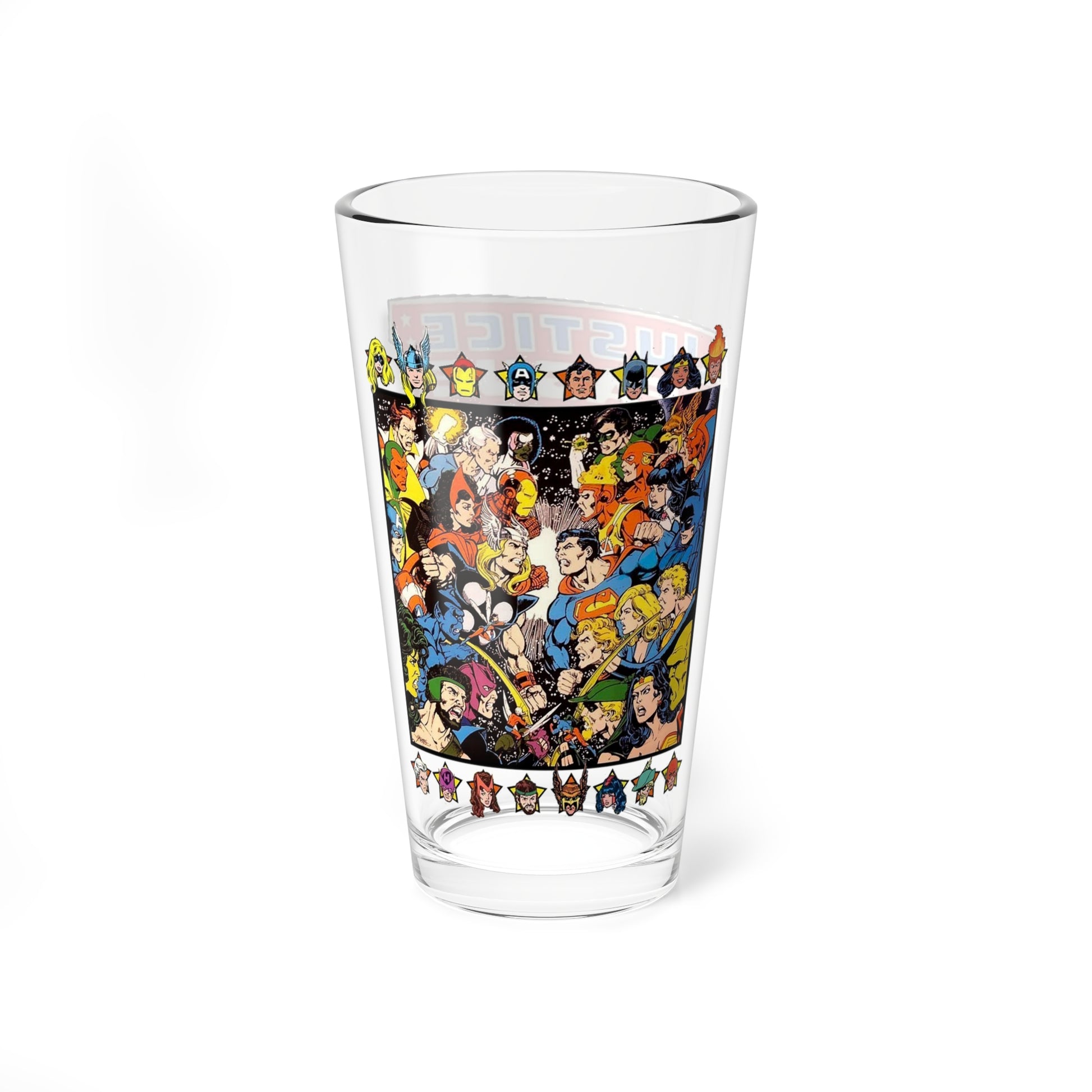 Justice League Vs Avengers Pint Glass, 16oz - George Perez Art - Superman, Iron Man, Thor, Captain America, Wonder Woman, Scarlet Witch, Green Lantern - DC & Marvel Comics