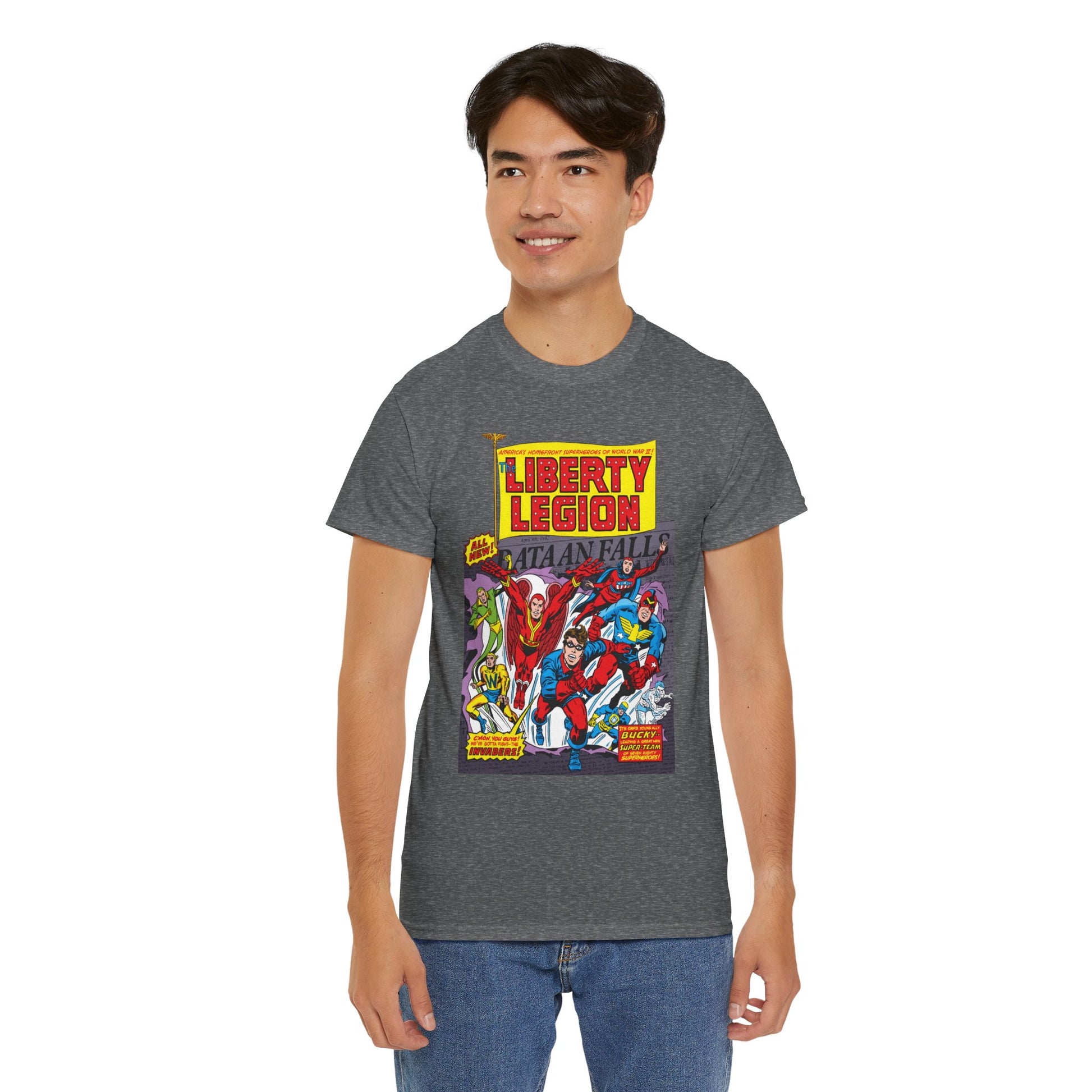 Assemble with the legendary Liberty Legion in this iconic Marvel tee celebrating the heroes who defined an era. Featuring Bucky, Miss America, Whizzer, Patriot, and Red Raven from Marvel Premiere #29, this shirt honors the golden age of comics with bold, timeless design. Perfect for collectors and Marvel enthusiasts who appreciate the deep cuts of comic history. Wear your fandom with pride.