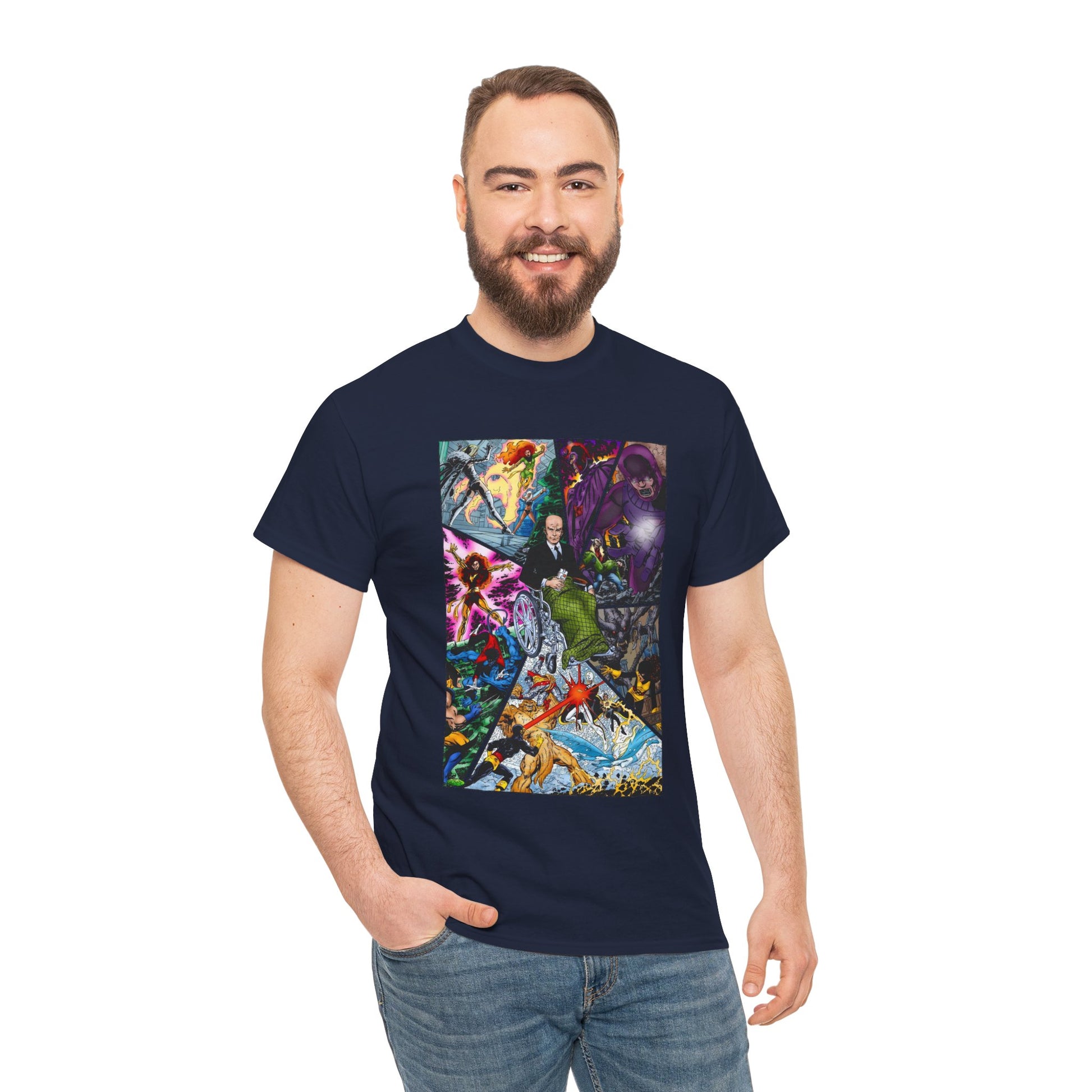 Honor the heroic spirit of Charles Xavier with this Professor X T-shirt featuring iconic John Byrne artwork. This design highlights legendary X-Men heroes like Dark Phoenix and Cyclops, alongside the fearsome Sentinels, capturing the epic saga of Marvel Comics. Perfect for those who stand with courage and hope, this shirt embodies the strength and unity of mutantkind’s fearless founder. Wear it proudly and join the fight for a better tomorrow.