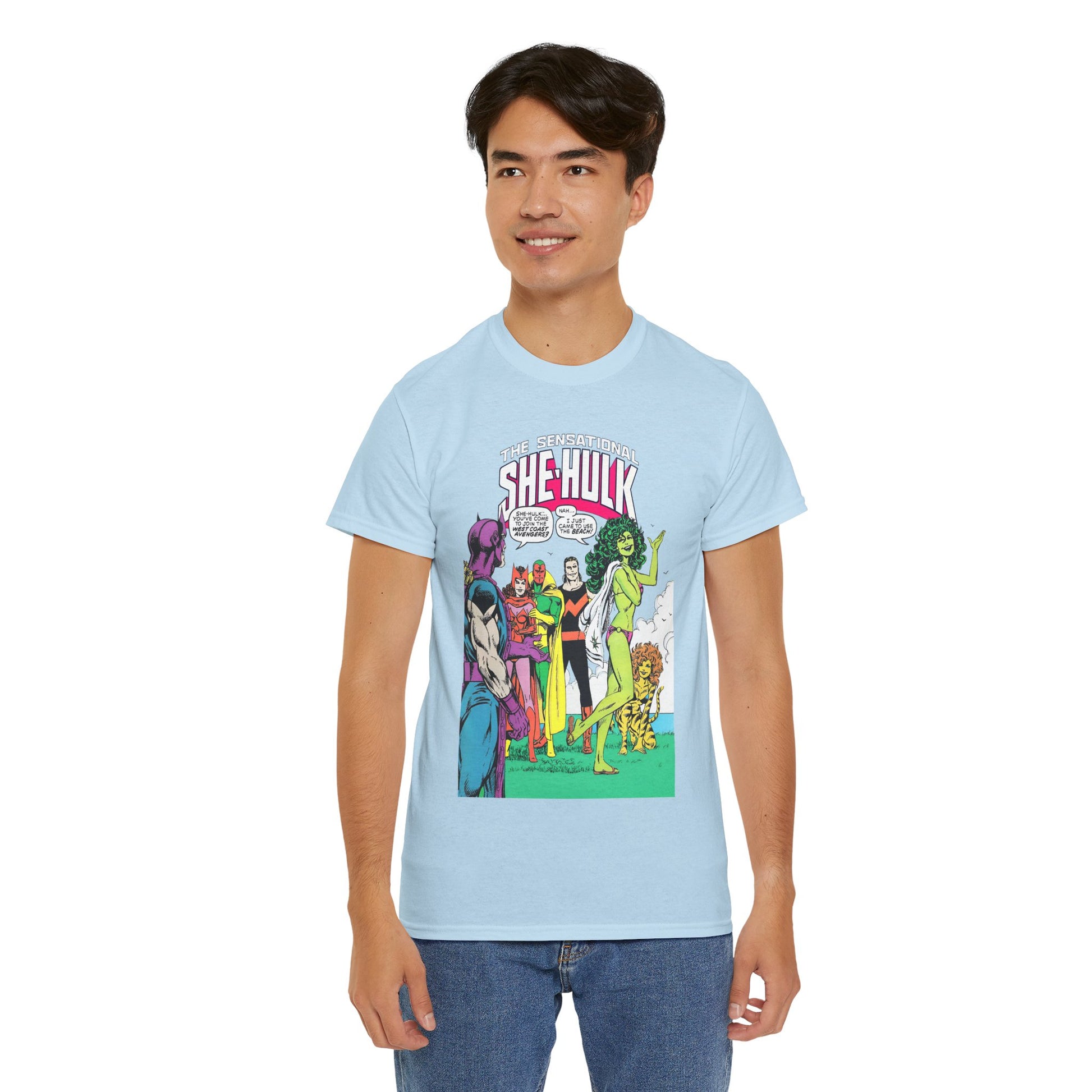 She-Hulk T-Shirt - John Byrne Art - West Coast Avengers Appearance - Hawkeye, Scarlet Witch, Wonder Man, Vision, Tigra - Marvel Comics