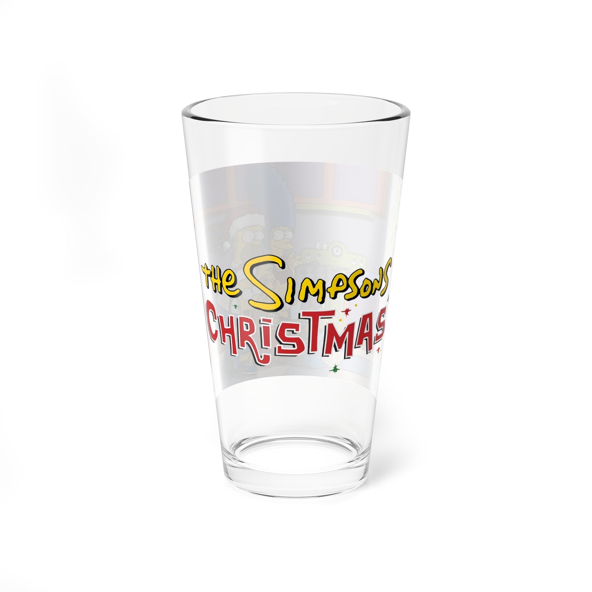 Get into the holiday spirit with this festive Simpsons Christmas pint glass! Showcasing Homer, Marge, Bart, Lisa, and Maggie in all their yuletide glory, this 16oz glass is the perfect companion for holiday gatherings. Whether you're sipping eggnog, mulled cider, or your favorite seasonal drink, you'll enjoy every moment with the Simpson family by your side. A fantastic gift for devoted fans and a playful addition to any holiday celebration. Spread joy and laughter this season!