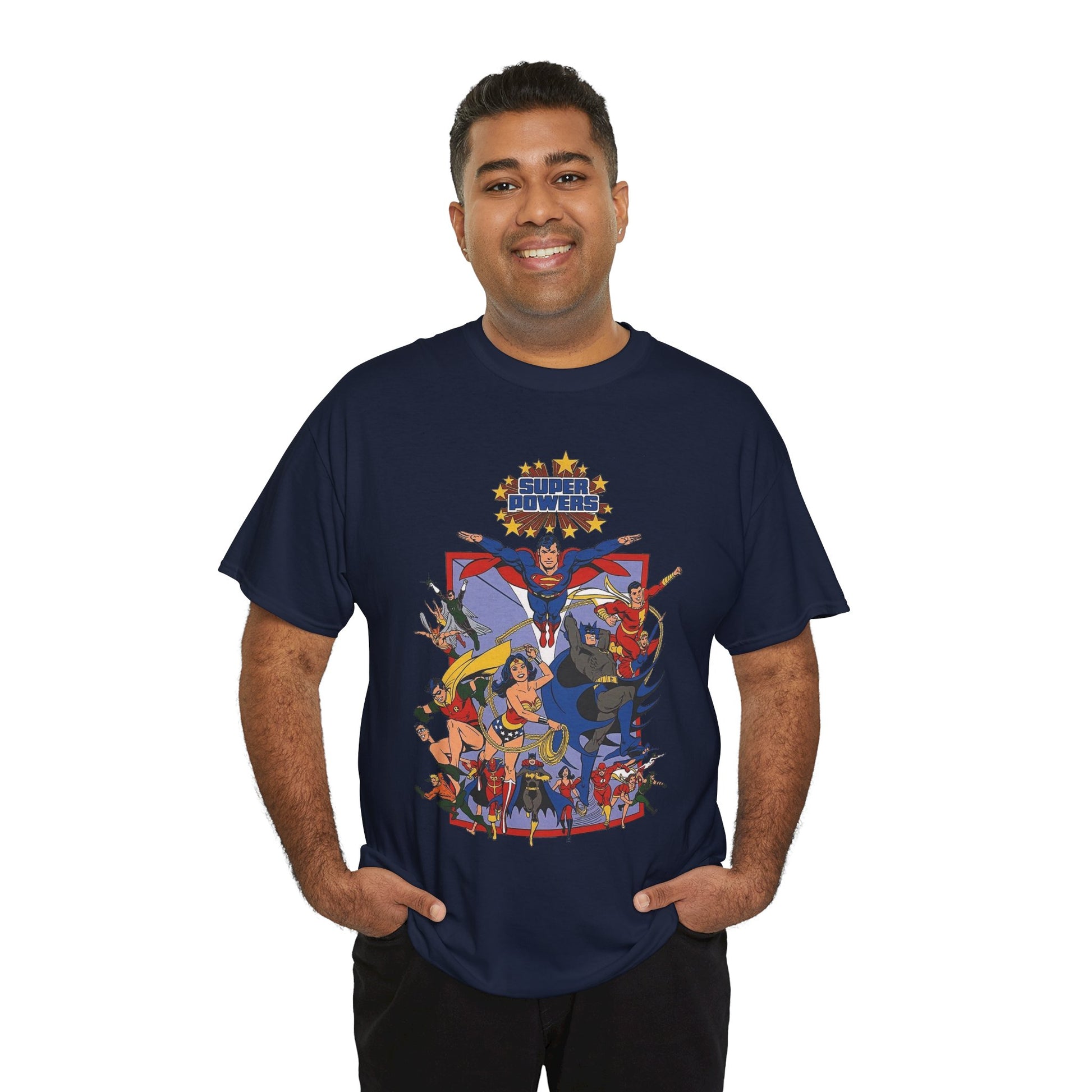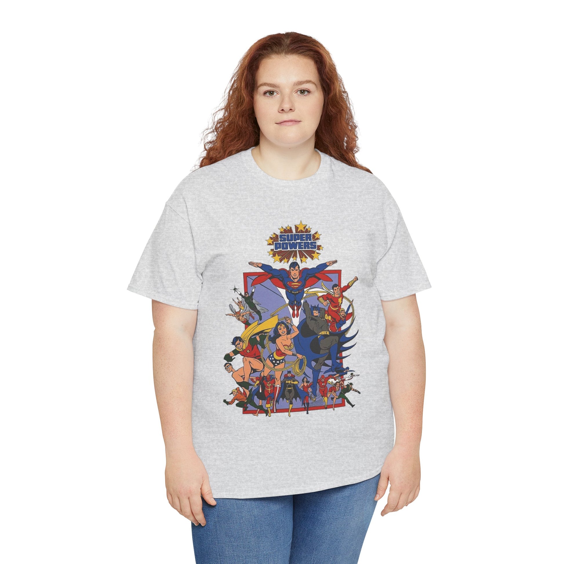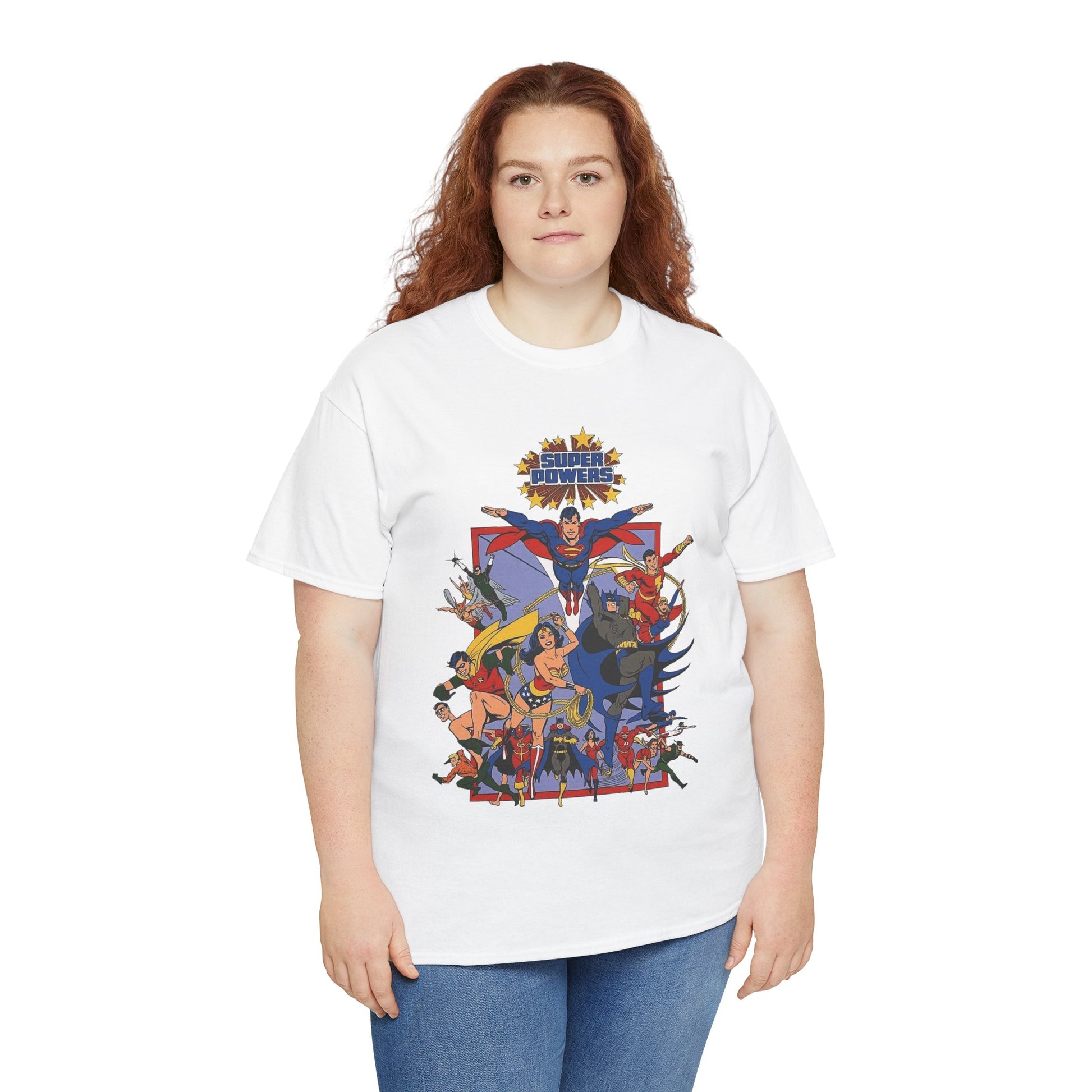 Super Powers T-Shirt - Superman, Flash, Wonder Woman, Batman, Batgirl, Robin, Plastic Man, Aquaman, Hawkman, Supergirl - 1980s Kenner Toy Line - Retro DC Comics