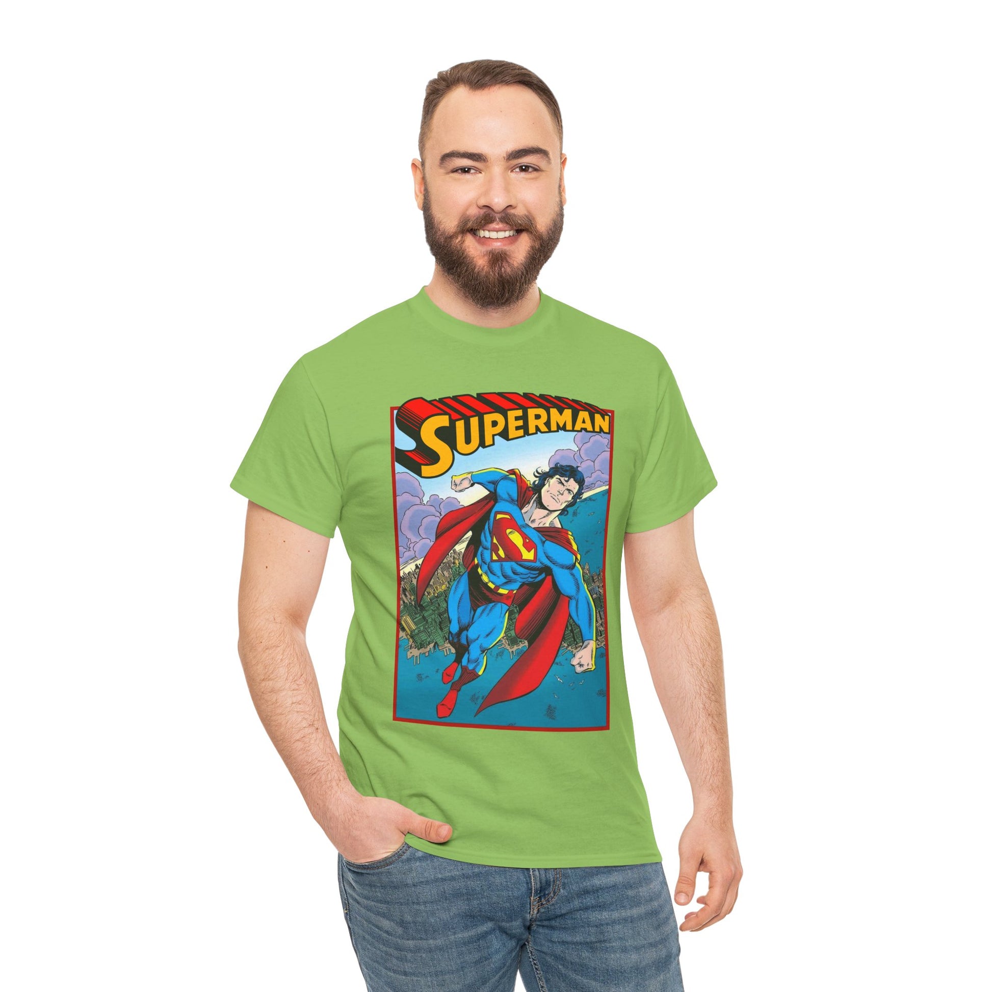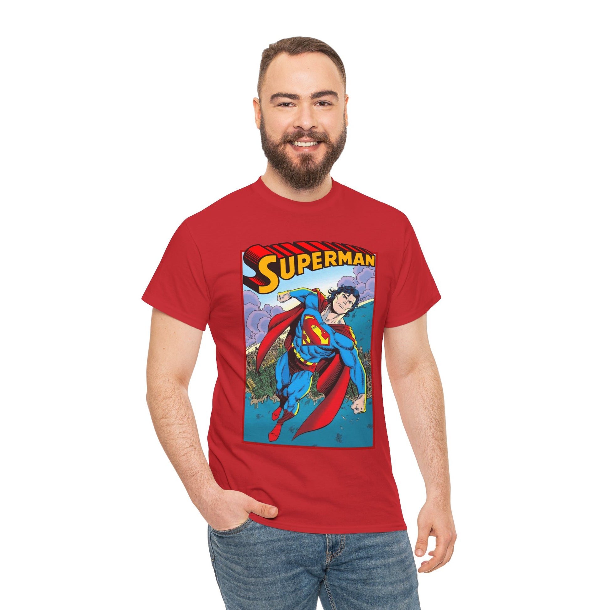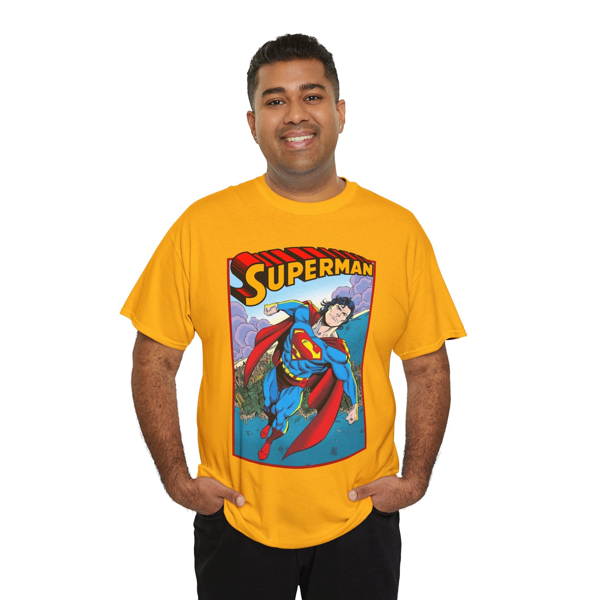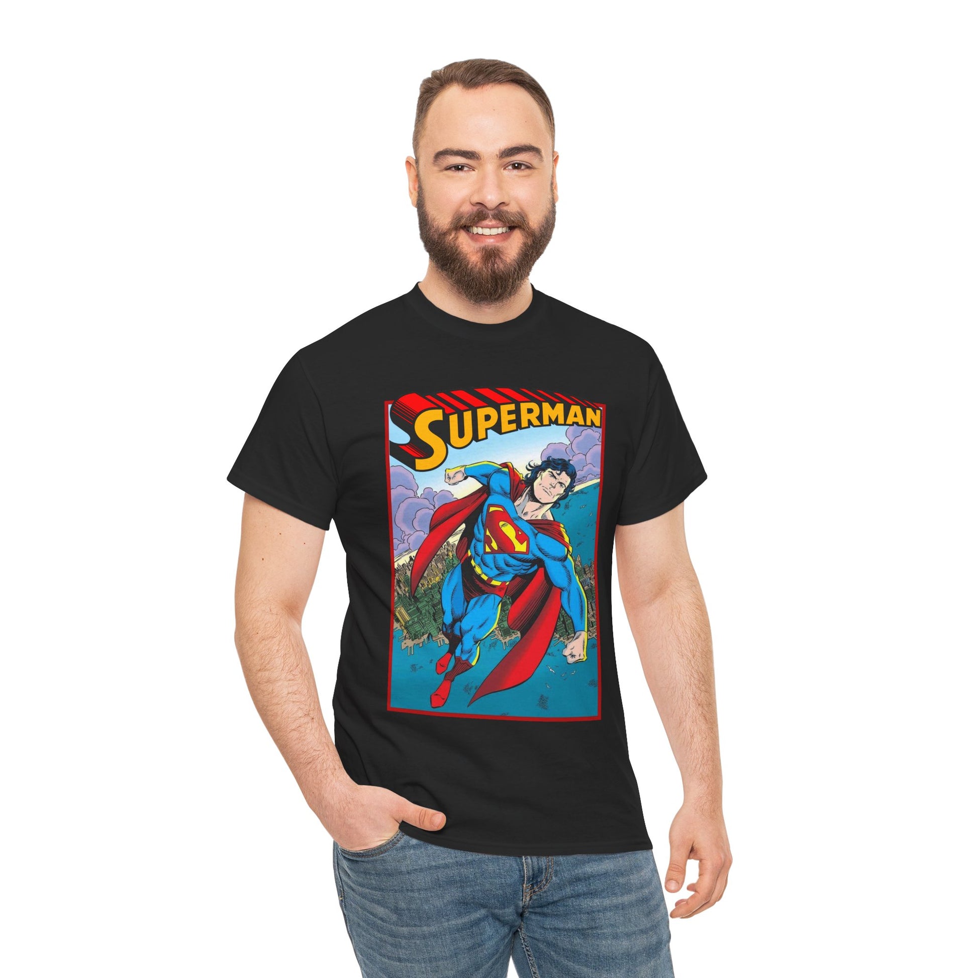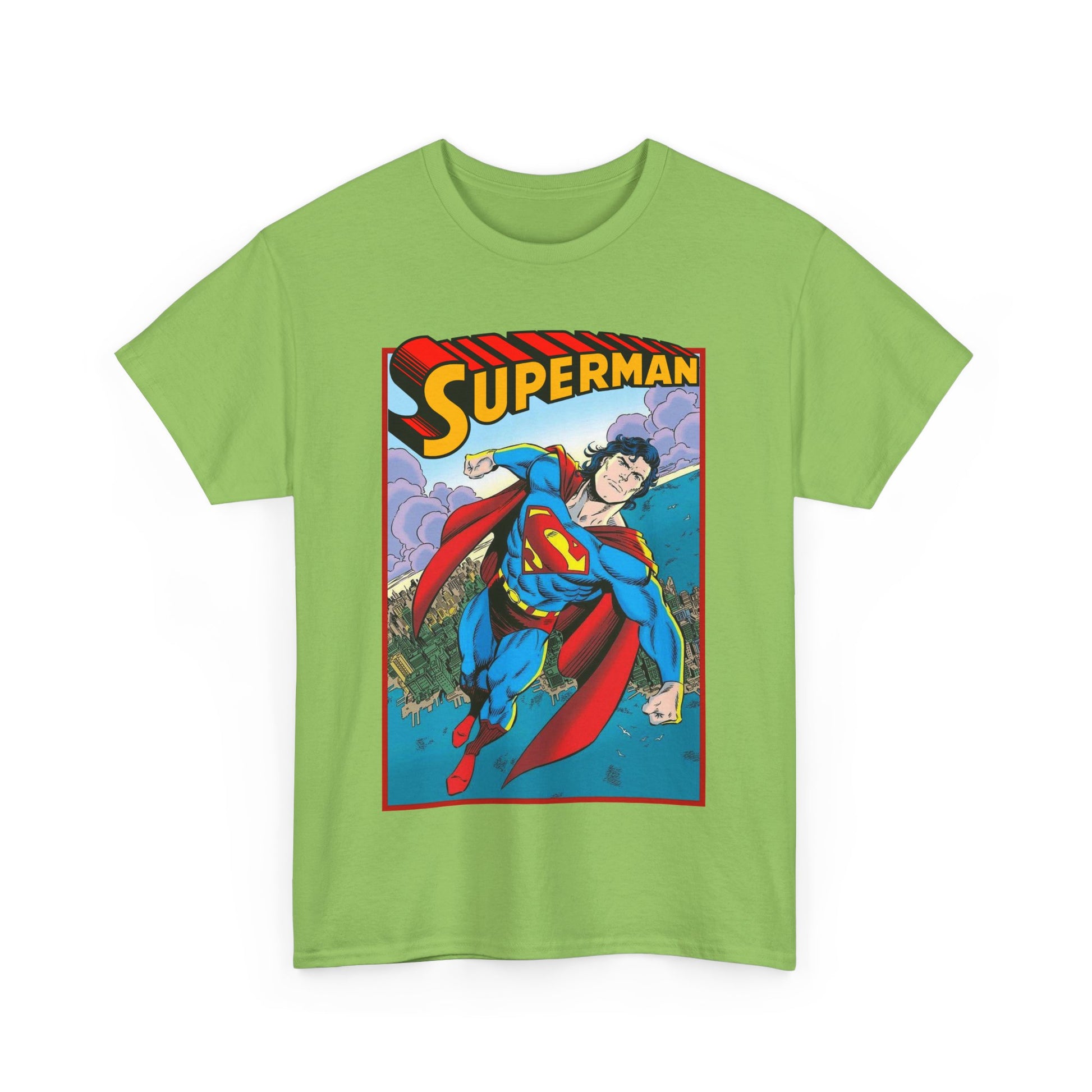 Superman T-Shirt - Tom Grummett Art - DC Comics - Metropolis, Man of Steel Flying Through the Sky - Post-Reign of the Supermen Storyline Artwork