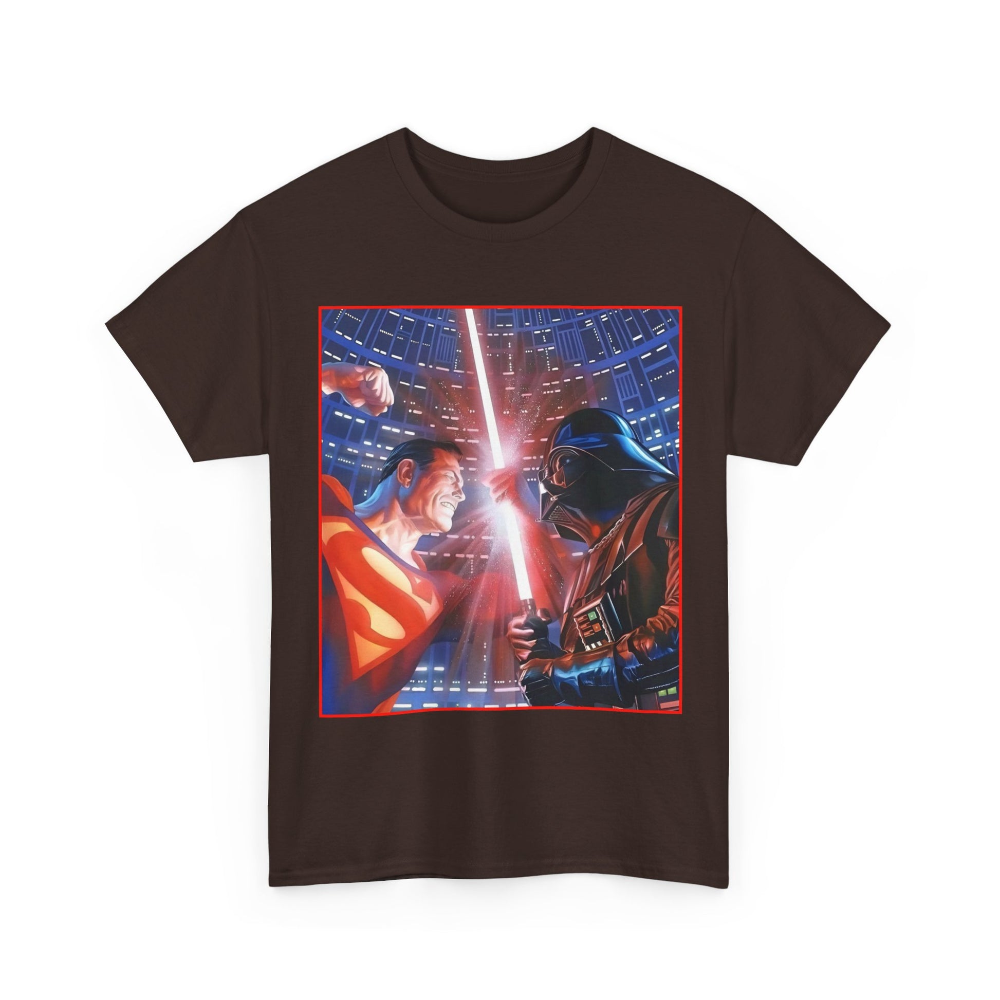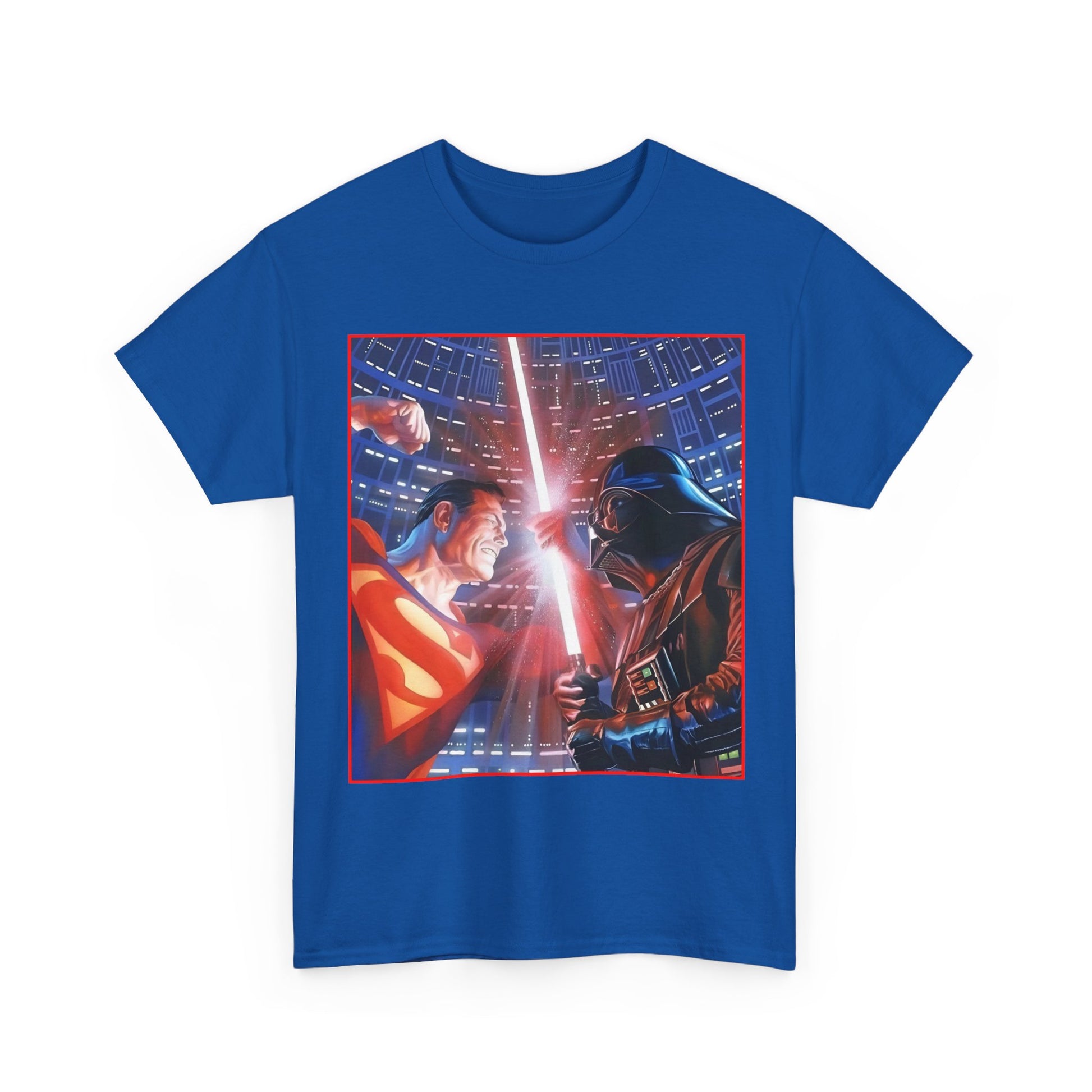 Unite two legendary worlds with this epic T-shirt featuring Superman and Darth Vader, brought to life by the iconic art of Alex Ross. Perfect for fans of DC Comics and Star Wars alike, this shirt showcases a dramatic clash of heroes and villains. Wear your power and passion boldly with a design that symbolizes strength, courage, and the ultimate battle of good versus evil.