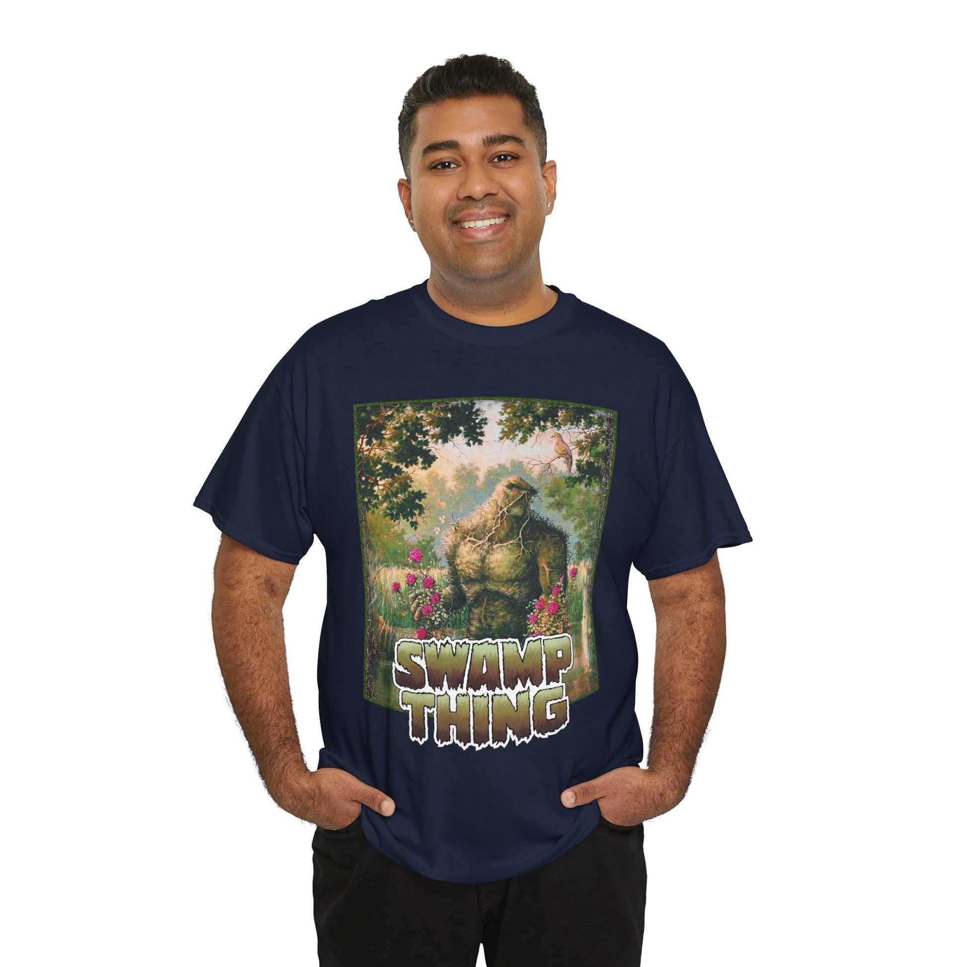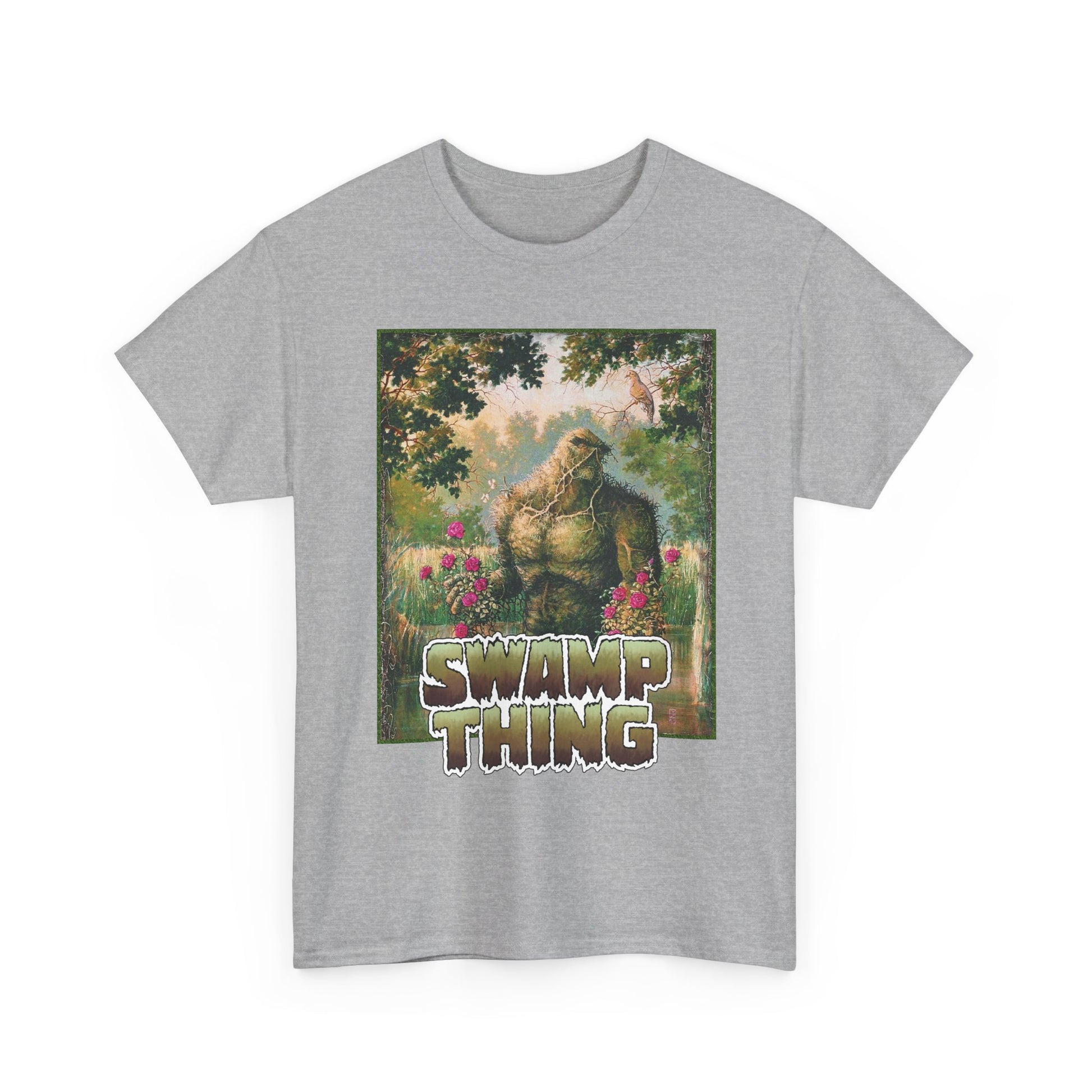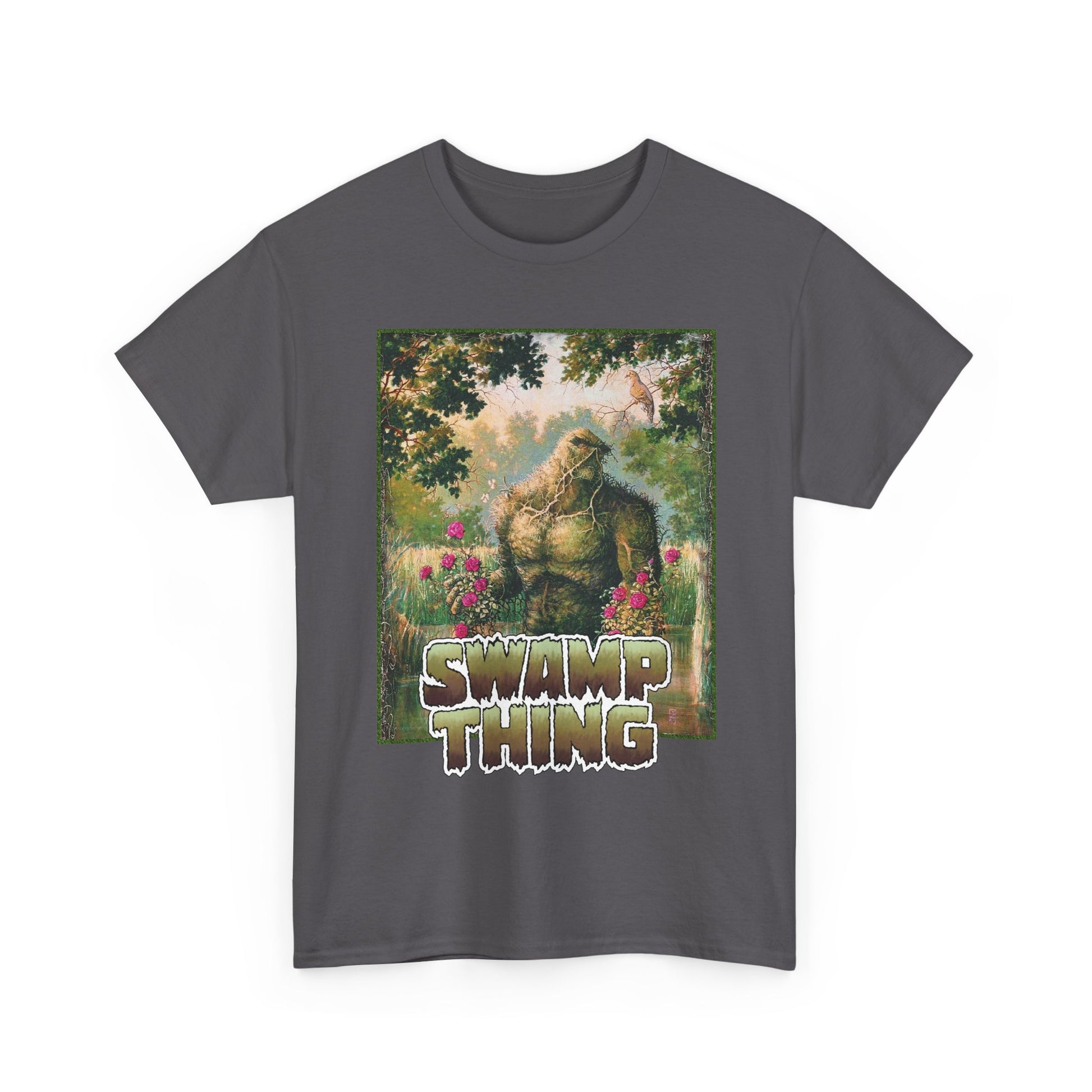 This 100% cotton graphic tee features Swamp Thing art, perfect for any collector. It's in stock and ready to ship.