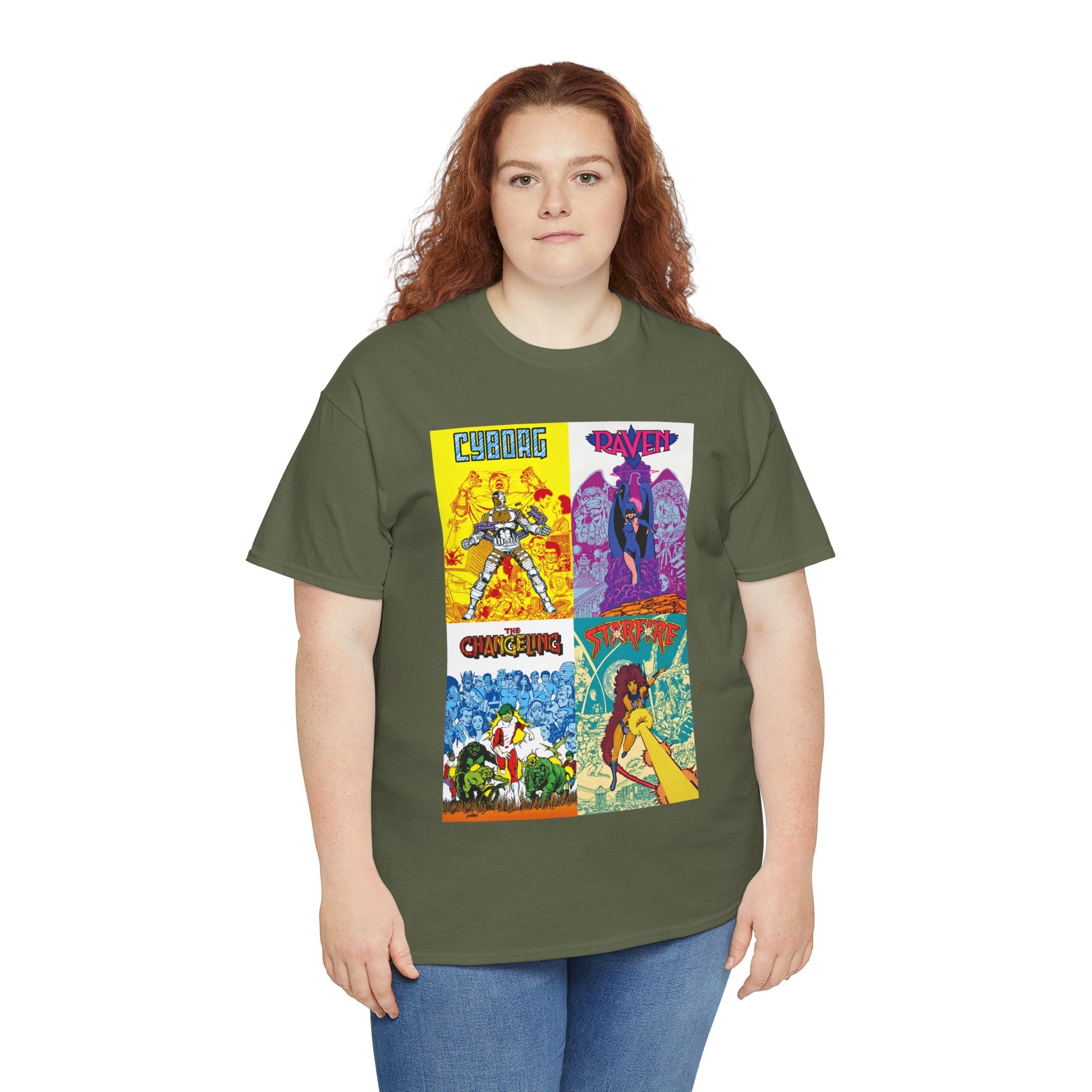 Tales of the New Teen Titans T-Shirt - George Perez Art - Cyborg, Raven, Changeling, Starfire - 1980s Mini-Series Showcasing Their Origins - DC Comics