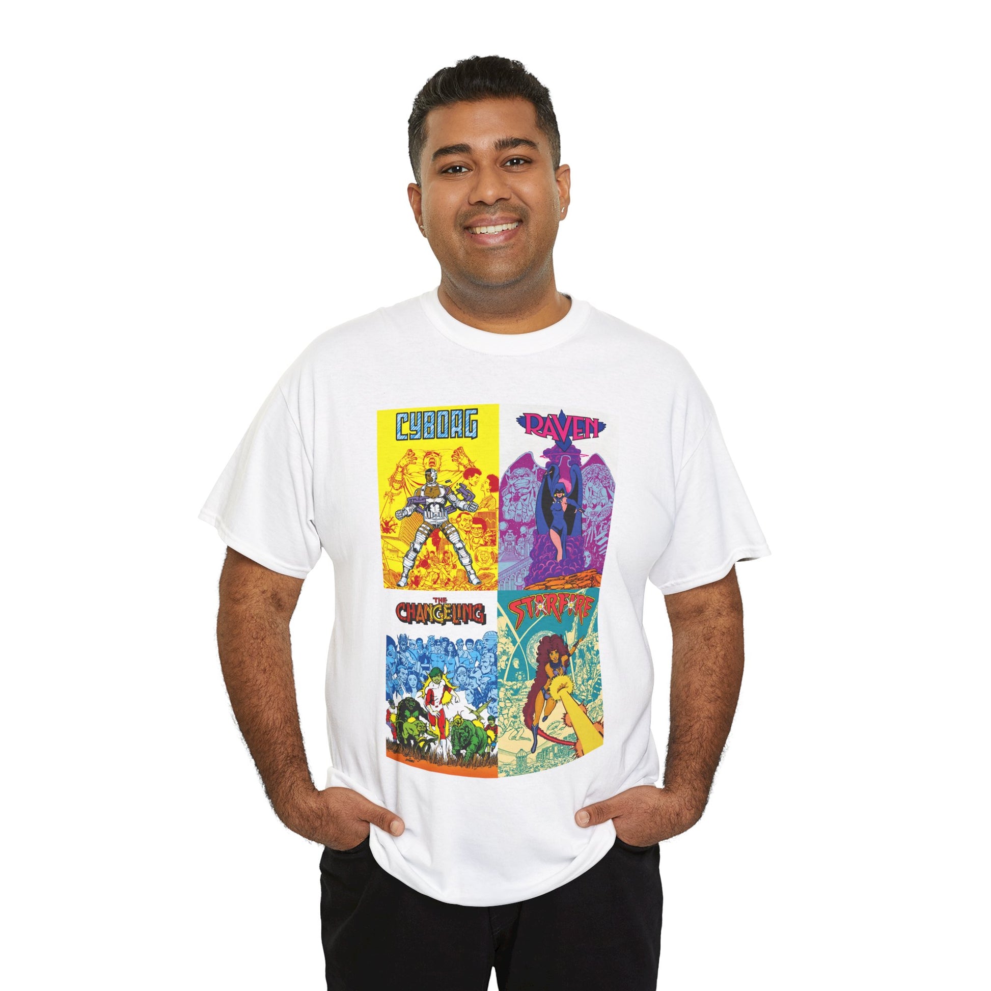 Show off your love for classic comics with this Tales of the New Teen Titans T-shirt, featuring stunning art by George Perez. Highlighting Cyborg, Raven, Changeling, and Starfire, this design from the legendary 1980s mini-series captures the origins of these beloved heroes with vibrant detail. Perfect for DC fans, this shirt brings timeless storytelling and dynamic visuals to your everyday style.