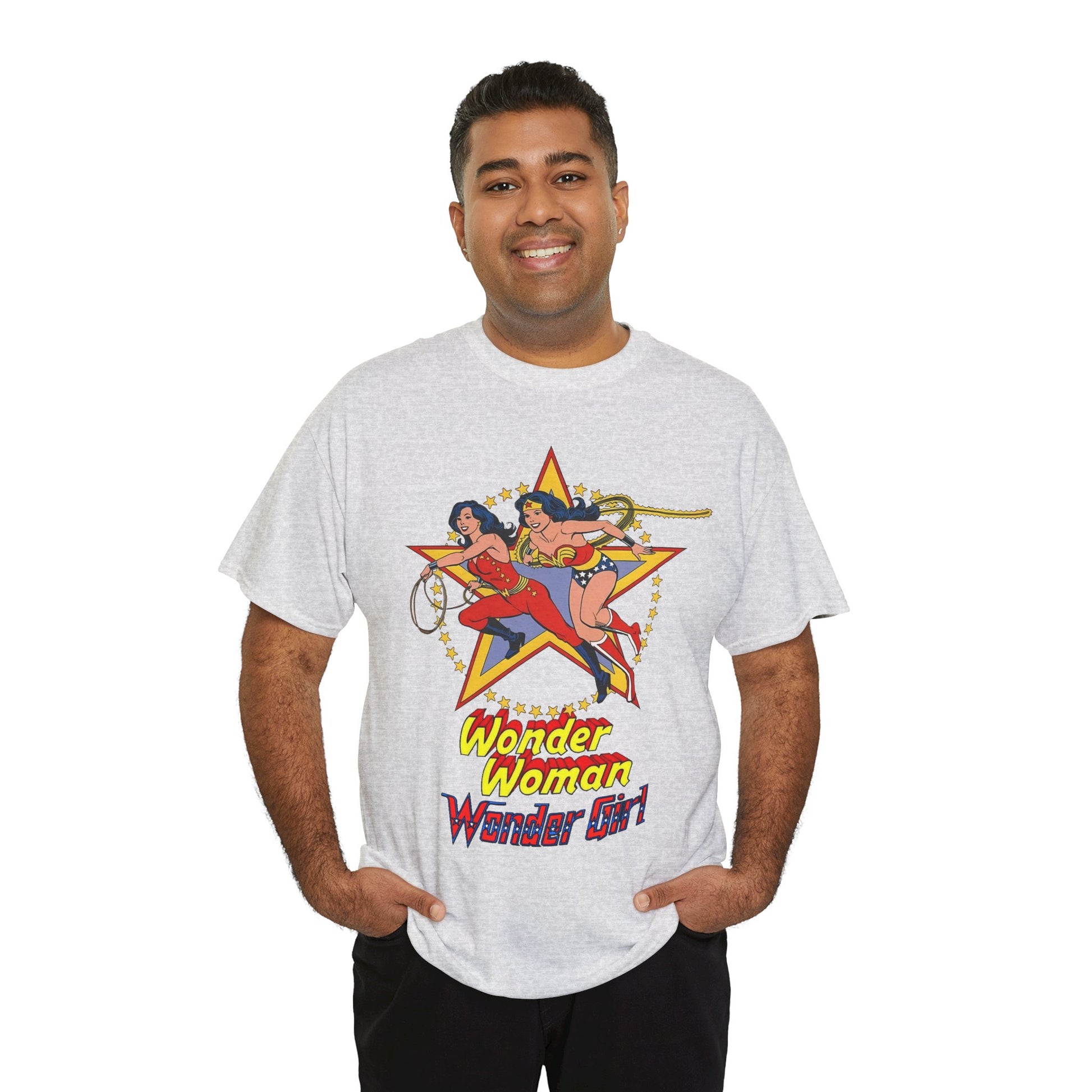 Celebrate iconic heroines with this high-quality Wonder Woman & Wonder Girl T-shirt featuring stunning artwork by Jose Luis Garcia-Lopez. Showcasing Diana Prince and Donna Troy in classic DC Comics style, this shirt combines timeless design with premium fabric for lasting comfort. Perfect for fans who want to honor the legacy of these powerful women while enjoying a durable and stylish tee.