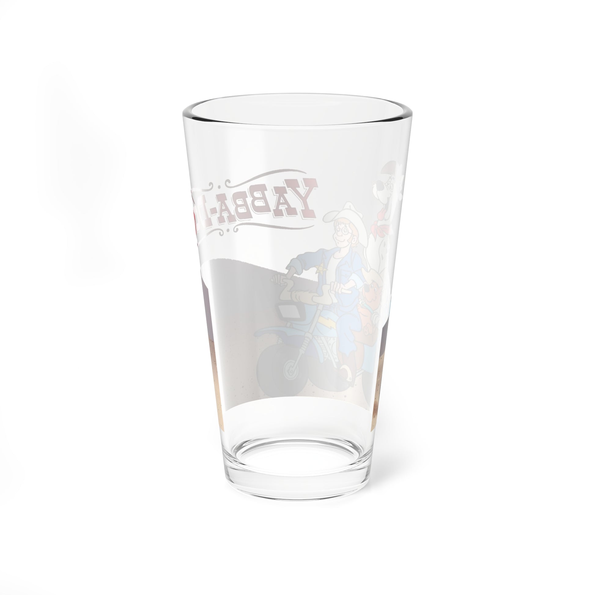 Raise a glass to classic cartoon fun with this charming 16oz pint glass featuring Yabba-Doo and Deputy Dusty! Inspired by the beloved Hanna-Barbera universe, this nostalgic design brings back memories of Saturday morning adventures. Perfect for fans of retro animation, whether you're sipping your favorite beverage or displaying it as a collectible. The vibrant cartoon artwork captures the playful spirit of the era, making it an ideal gift for anyone who cherishes golden age cartoons. Durable and dishwasher-safe, it's both functional and a delightful conversation starter.