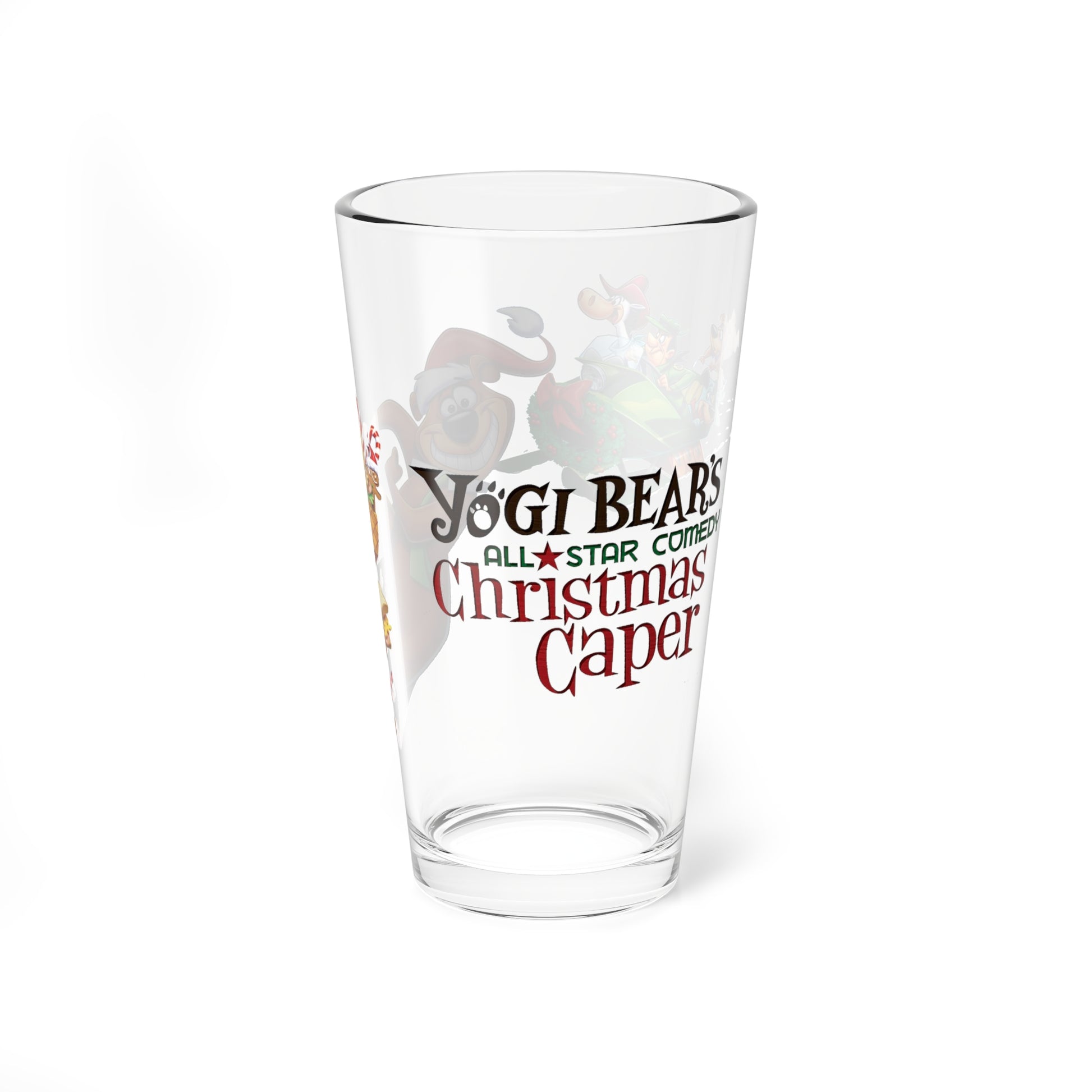 Yogi Bear's All-Star Comedy Christmas Caper Pint Glass, 16oz - Huckleberry Hound, Ranger Smith, Boo Boo - Hanna-Barbera Cartoon