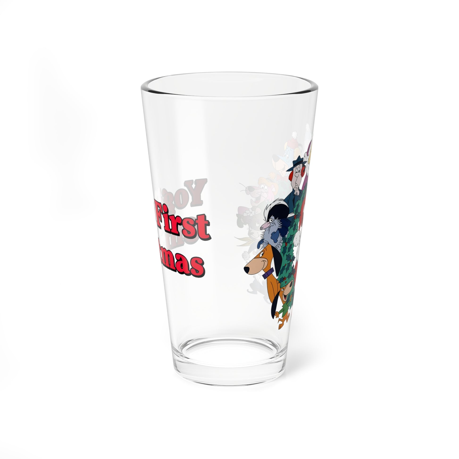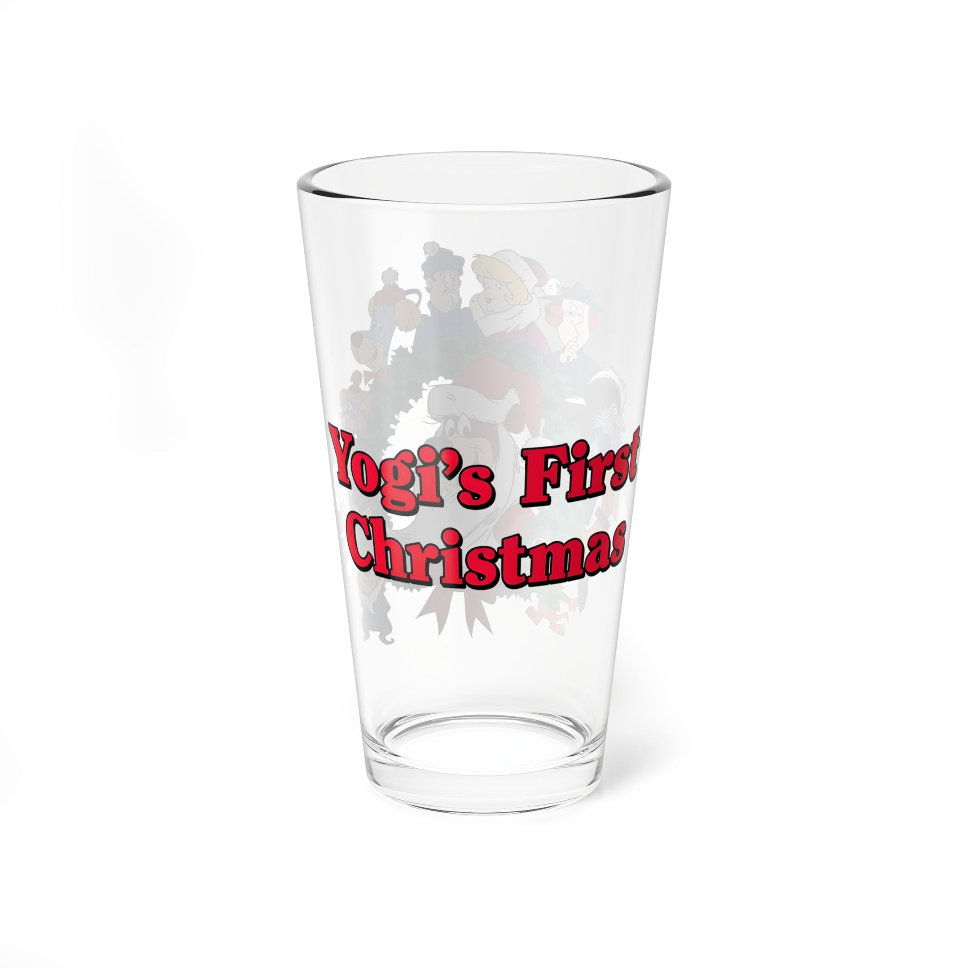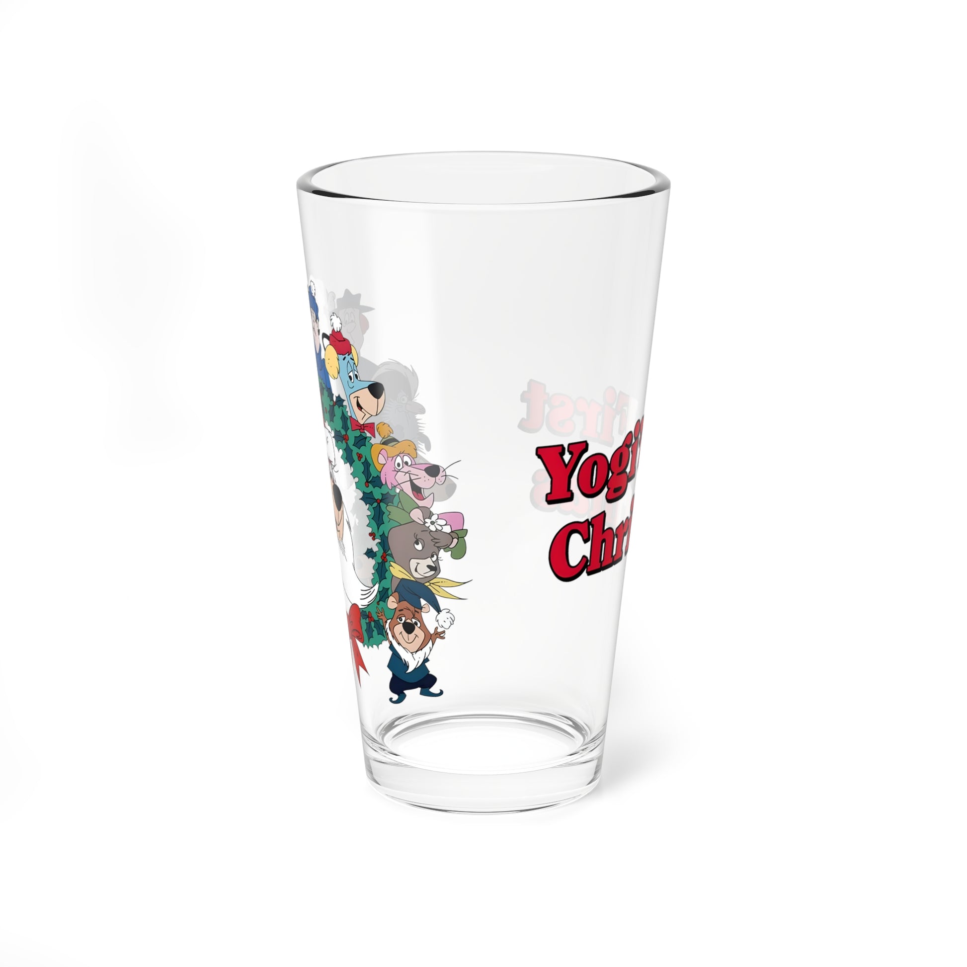 Raise a glass to holiday nostalgia with this charming 16oz pint glass celebrating Yogi Bear's first Christmas! Featuring beloved Hanna-Barbera characters—Yogi, Huckleberry Hound, Snagglepuss, and more—this festive design brings retro cartoon magic to your holiday gatherings. Perfect for eggnog, cocoa, or your favorite seasonal beverage, it's a delightful gift for cartoon fans and collectors alike. Cheers to classic holiday memories!